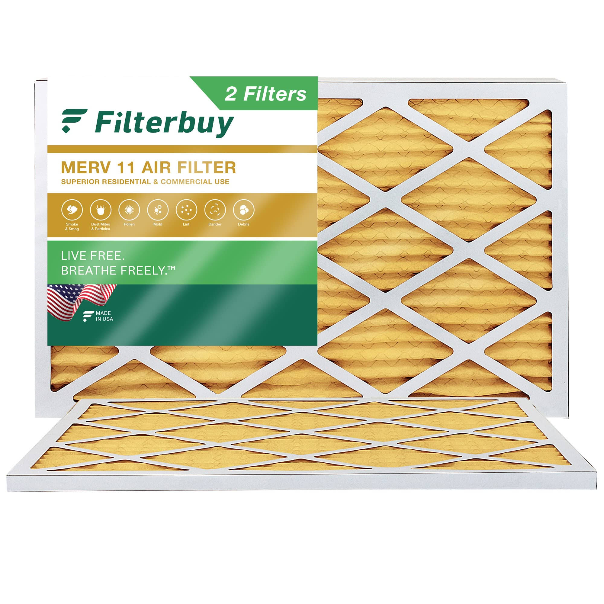 Filterbuy 16x25x1 Air Filter MERV 11, Pleated HVAC AC Furnace Filters Replacement (Set of 2) AFB16x25x1M11pk2