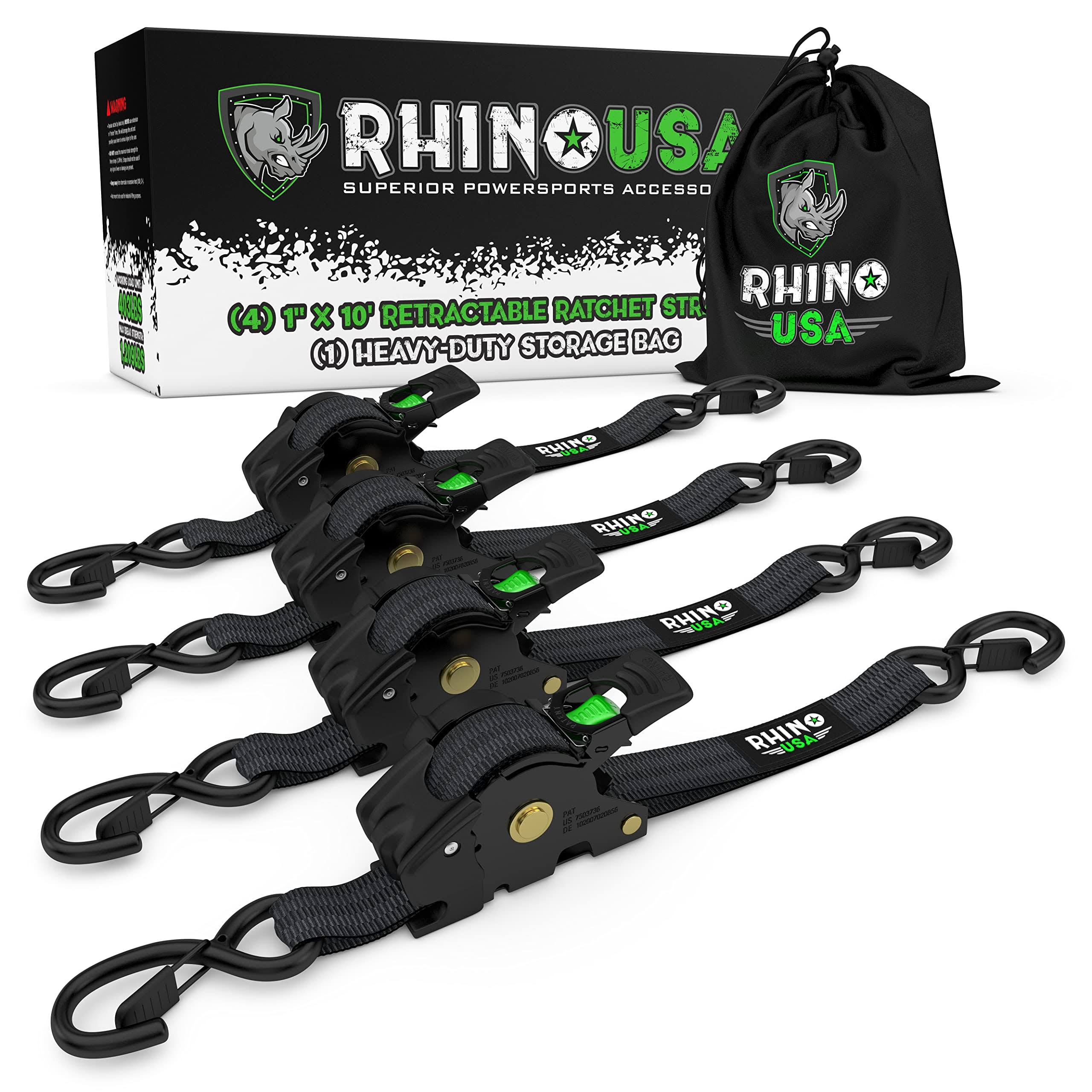 Rhino USA, Inc. 1" x 10' Retractable Ratchet Straps - 4-Pack