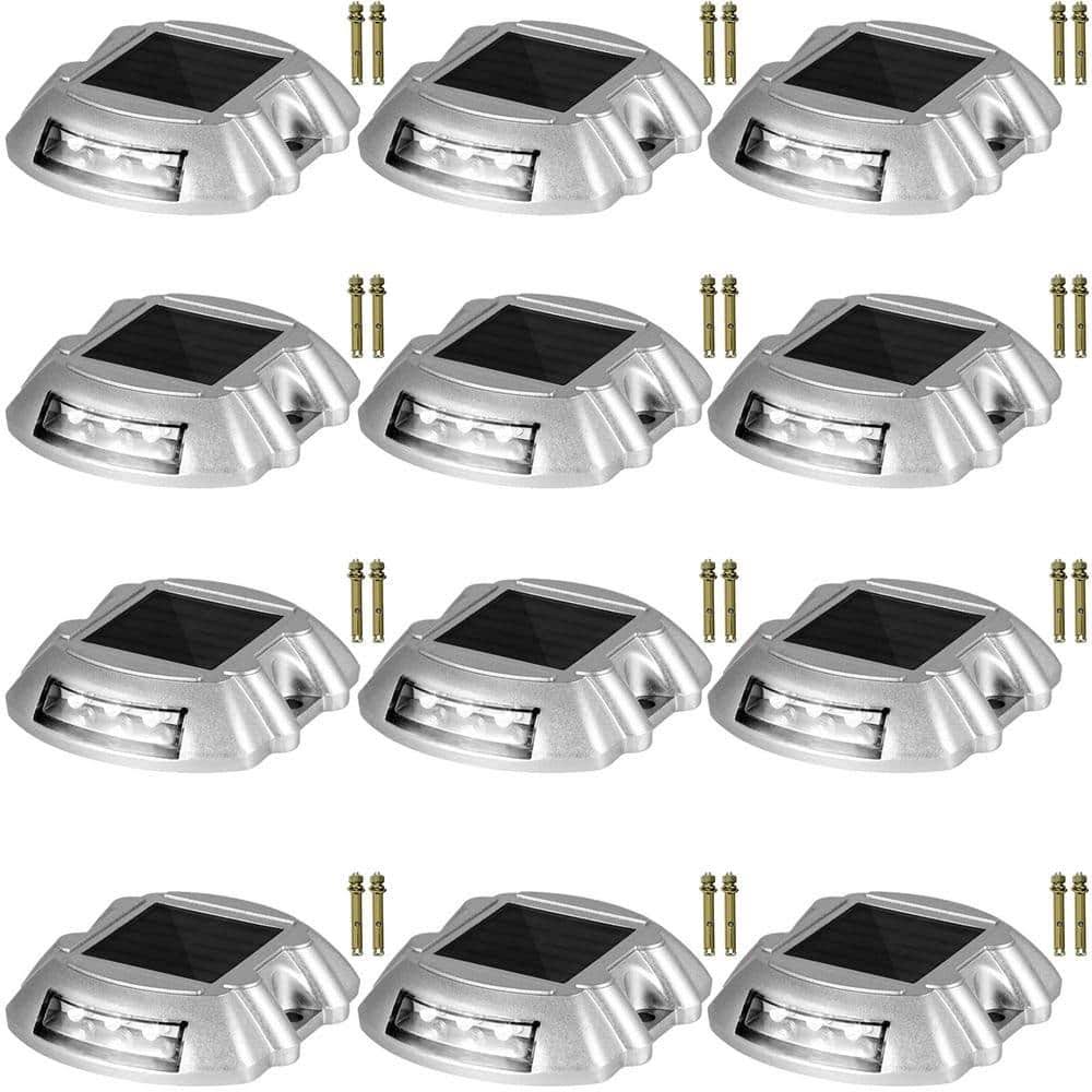 Solar Dock Lights Marine 12-Pack Outdoor Waterproof Wireless 6 LEDs Driveway Lights with Screw for Deck Driveway, White