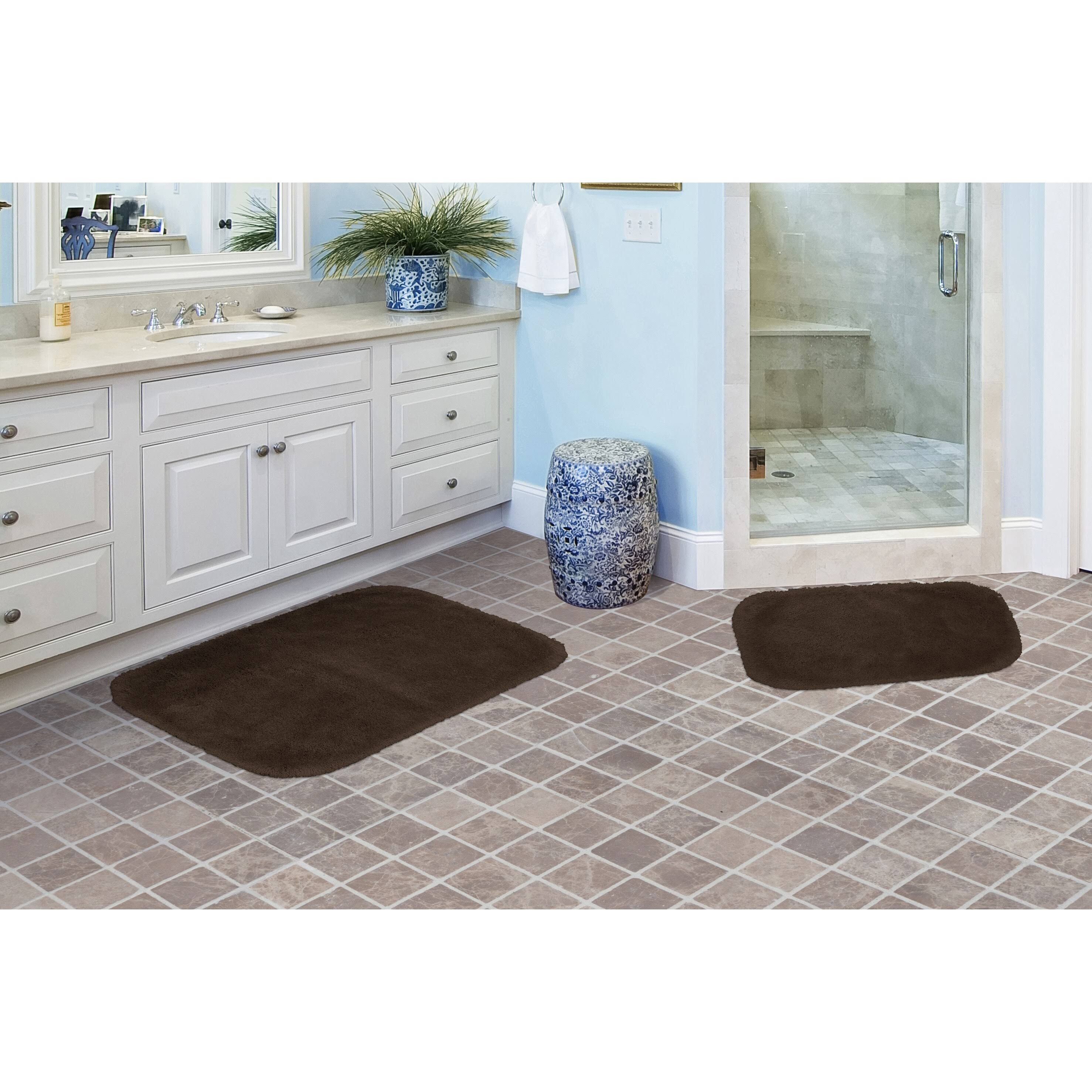 Garland 2 Piece Finest Luxury Ultra Plush Washable Nylon Bath Rug Set Chocolate Brown
