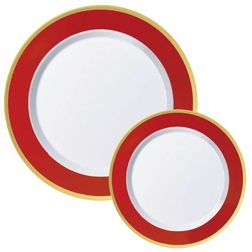 Round Premium Plastic Dinner (10.25in) Dessert (7.5in) Plates with Red