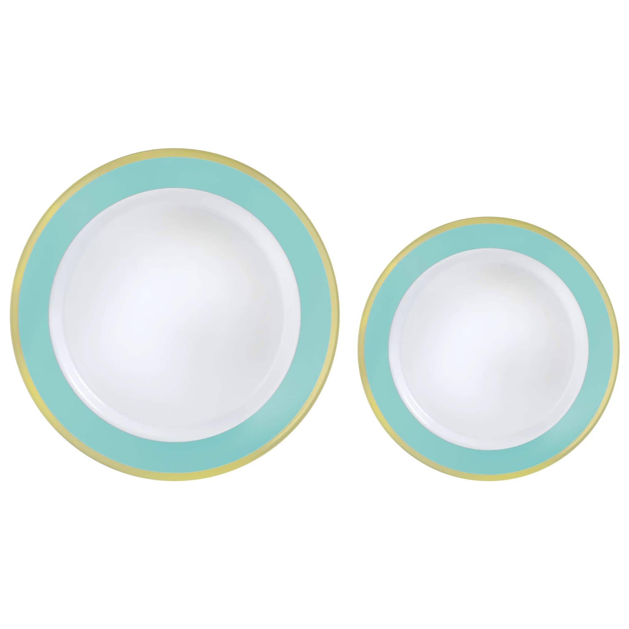 Robin's Egg Blue Premium Plastic Dessert & Dinner Plates Combo Pack 20ct