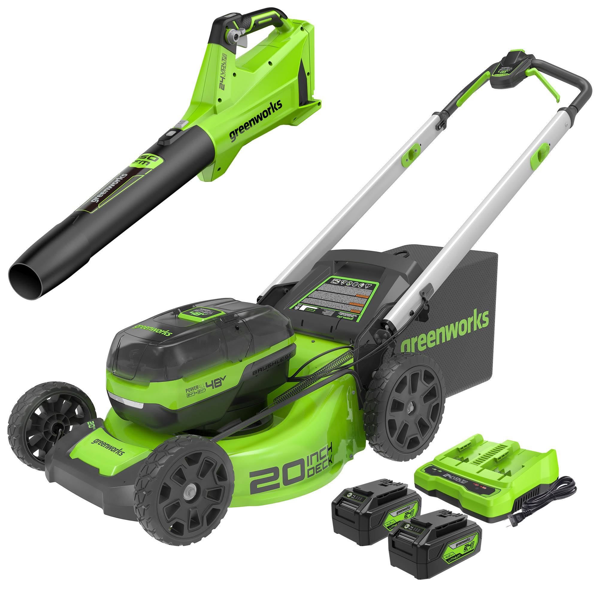 greenworkstools-48V (2x24V) 20" Cordless Battery Push Mower & 430 CFM Blower Combo Kit w/ (2) 4.0Ah Batteries & Charger