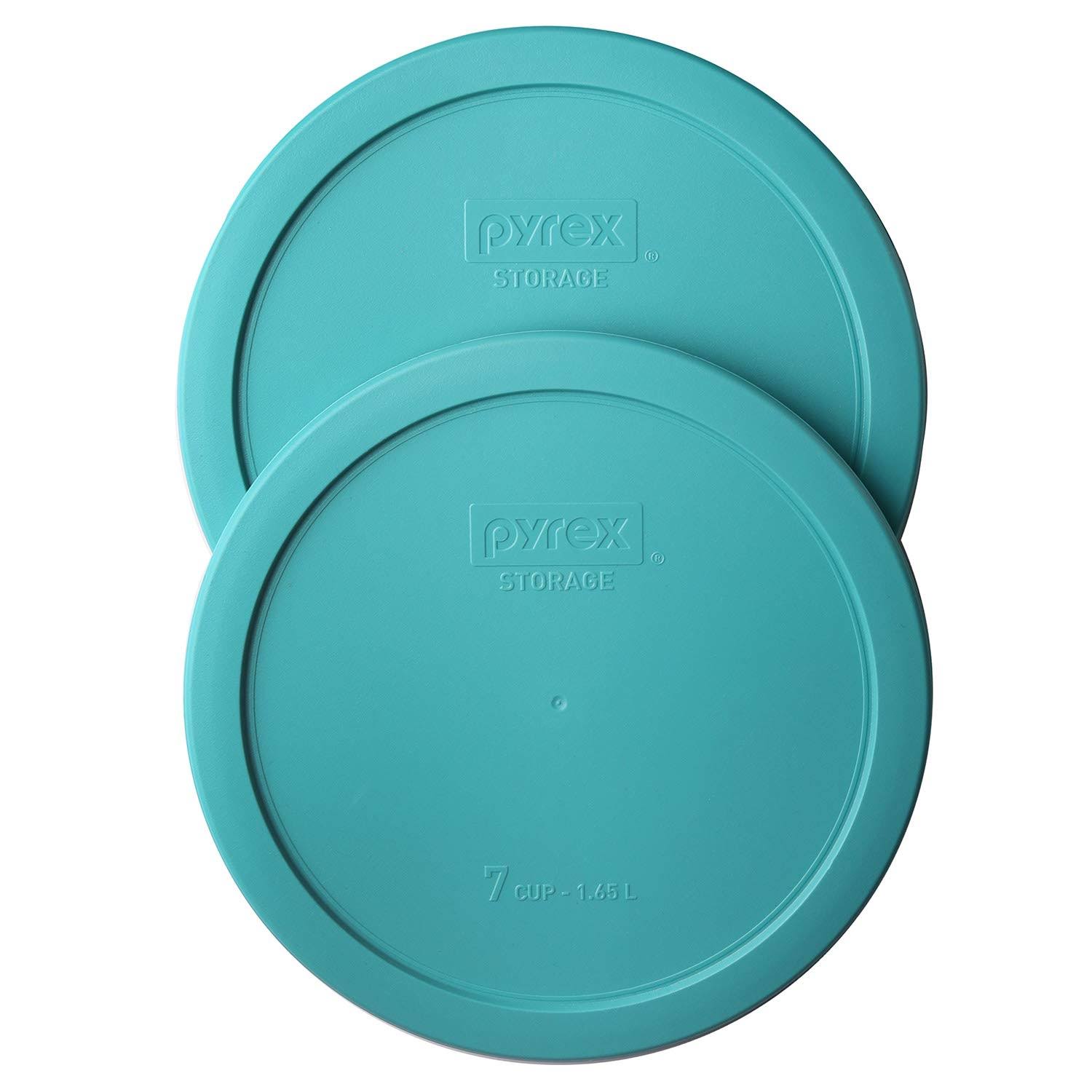 Pyrex Bundle - 2 Items 7402-PC 7-Cup Turquoise Plastic Storage Lids