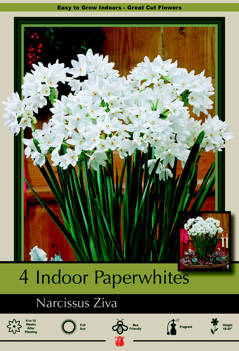 Ziva Paperwhite Narcissus - 5 Bulbs - 15/16 cm Bulbs - Indoor/Very Fragrant