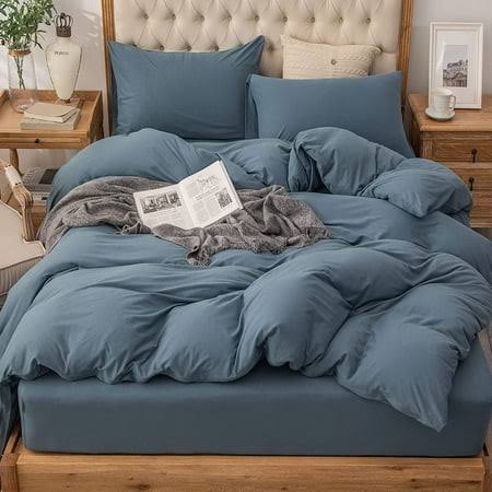 Pure Era 100% T-Shirt Cotton Jersey Knit Duvet Cover Set Full Size,Cerulean Blue ( 1 Comforter Cover +2Pillow Shams)