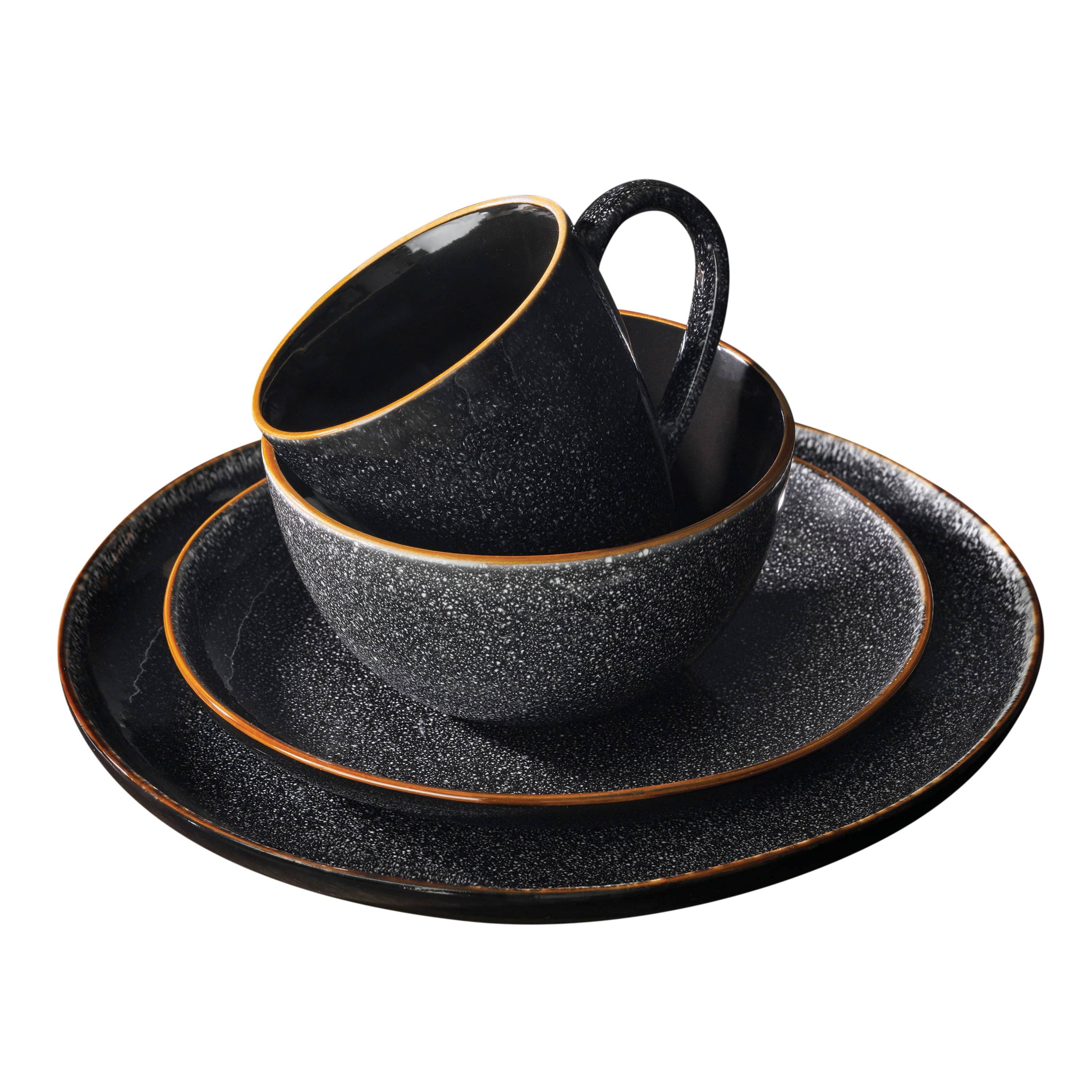 Better Homes & Gardens 16-Piece Burns Dinnerware Set, Black Speckled