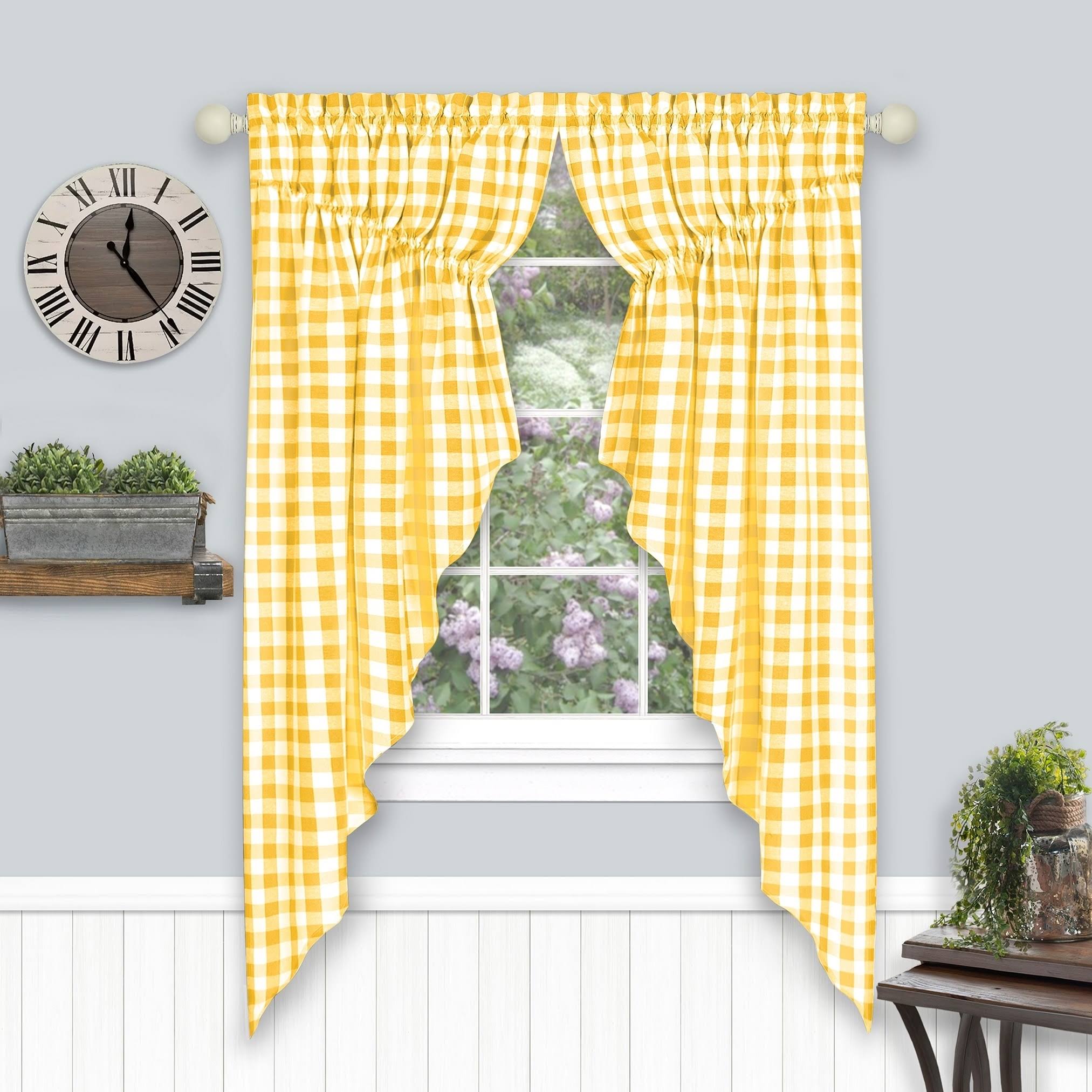 Buffalo Check Gathered Swag Window Curtain Pair, 72x63 Inches - Yellow