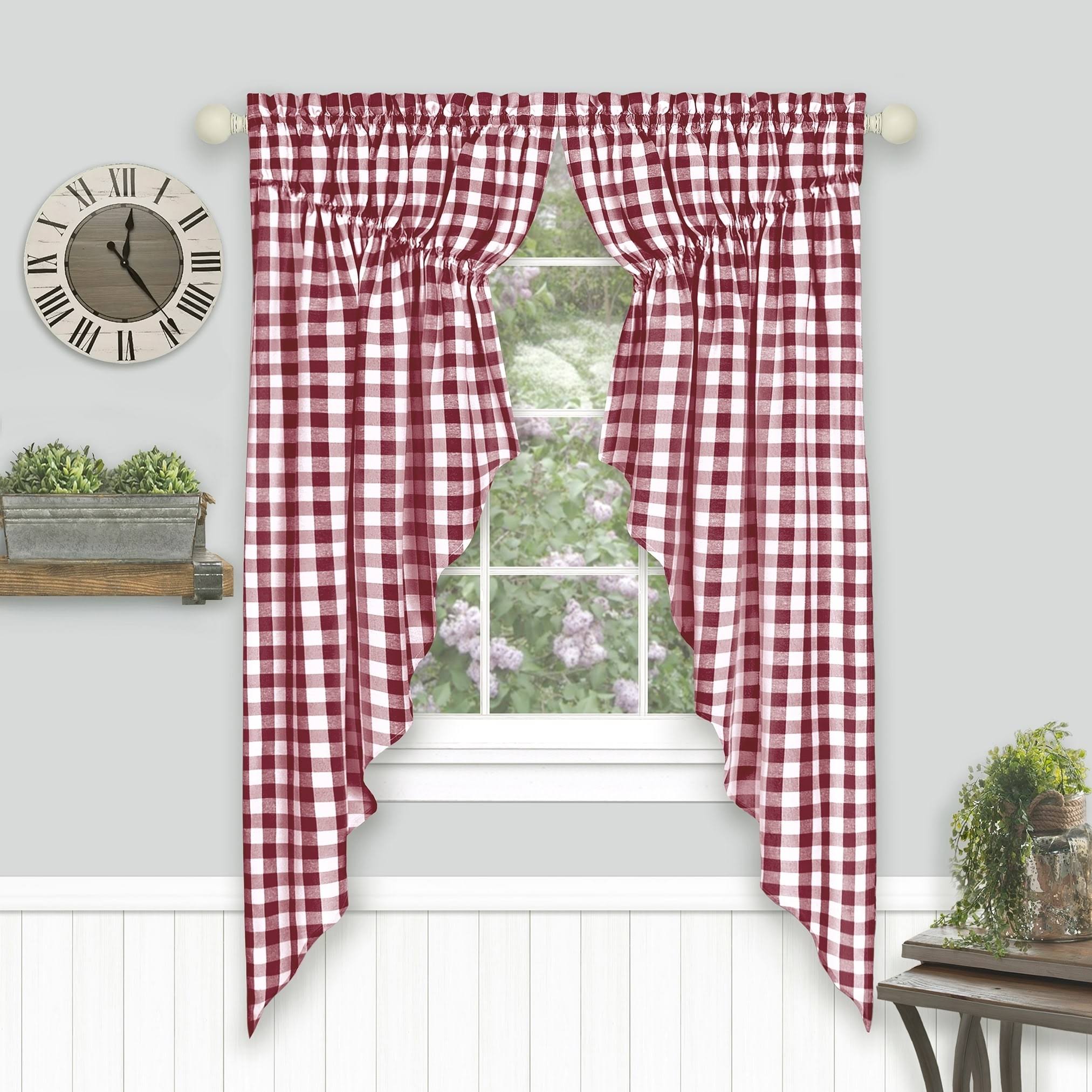 Buffalo Check Gathered Swag Window Curtain Pair, 72x63 Inches Burgundy