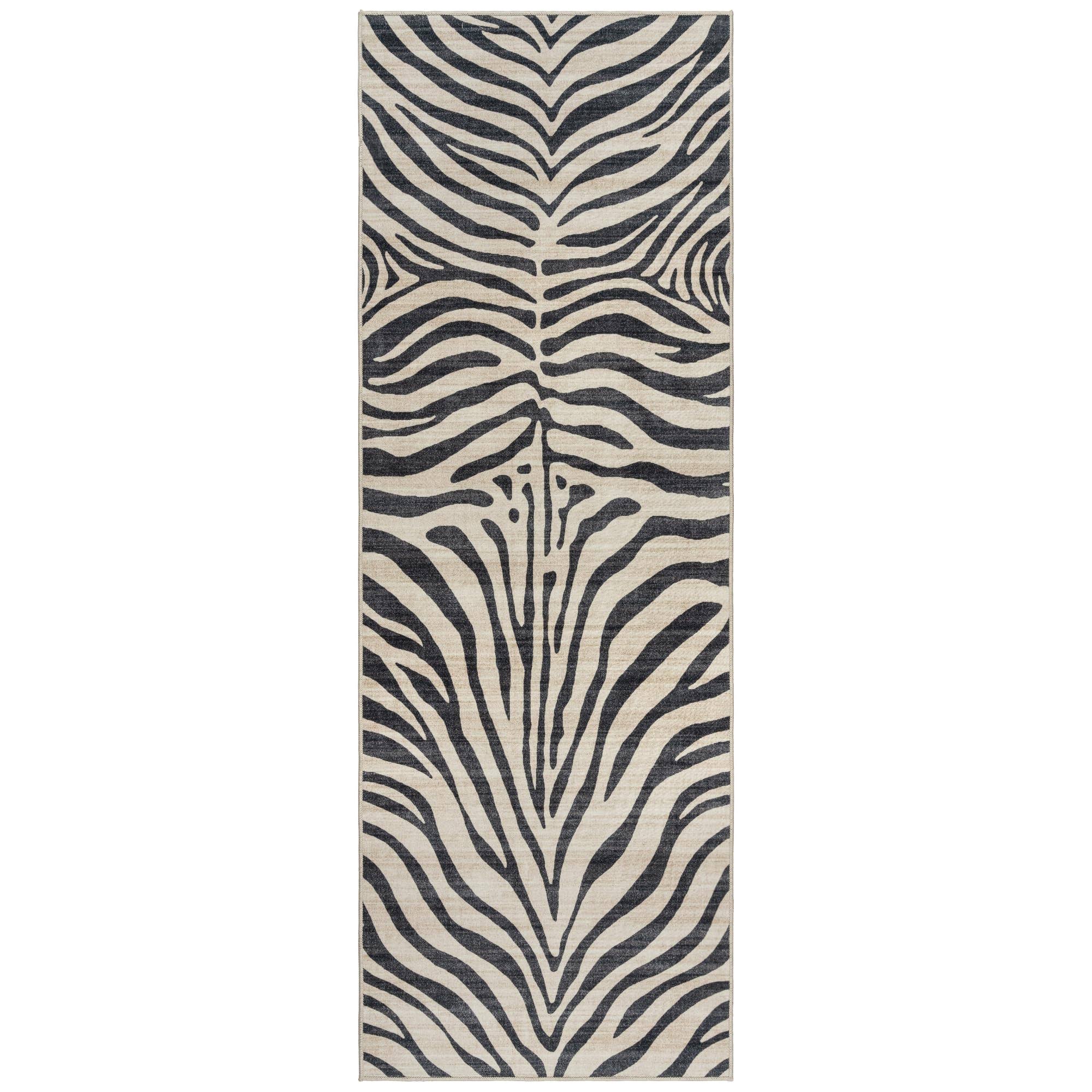 Gertmenian Zebra Black White Area Rug, 2x6 ft