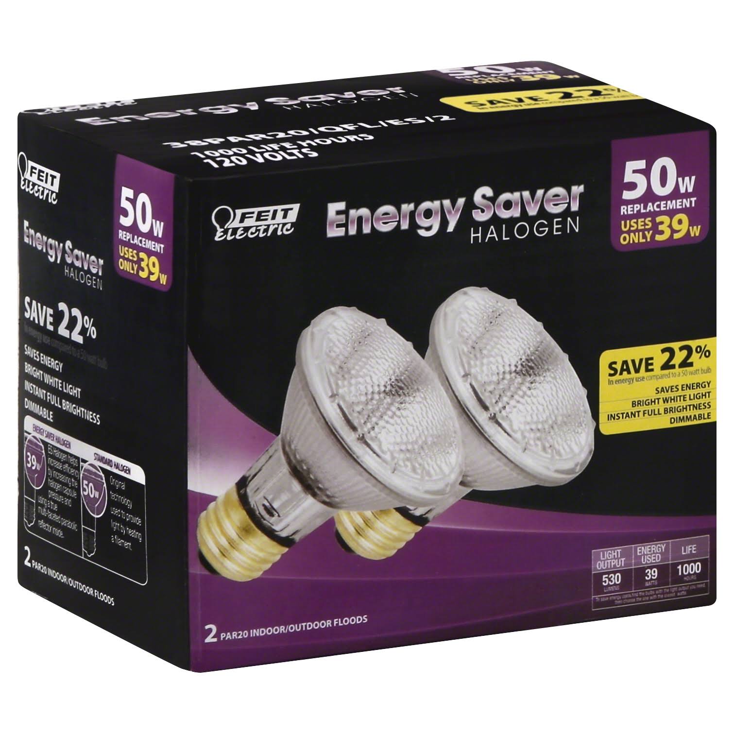 Feit Electric 38PAR20/QFL/ES/2 Dimmable Halogen Bulbs, 39 W - 2 pack