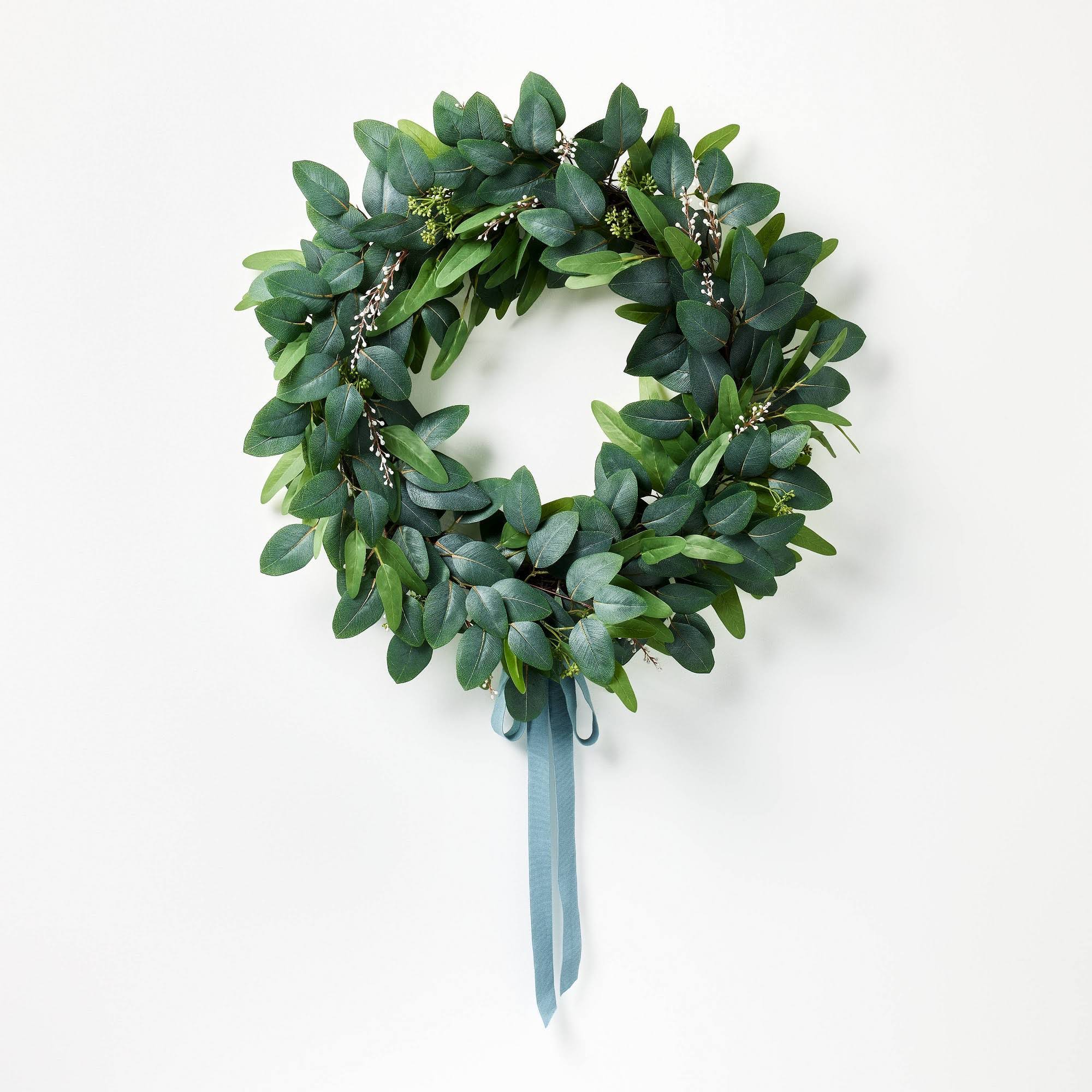 30" Eucalyptus Wreath with Ribbon Green - Threshold Designed with Studio McGee