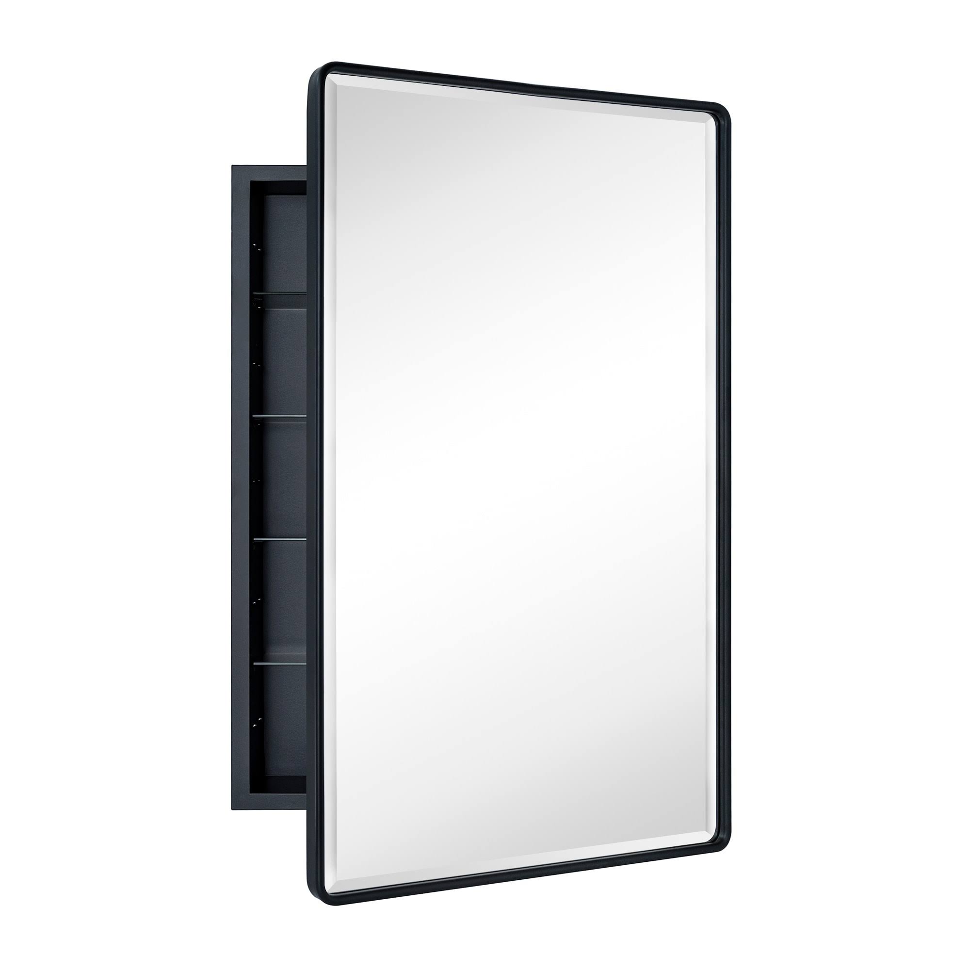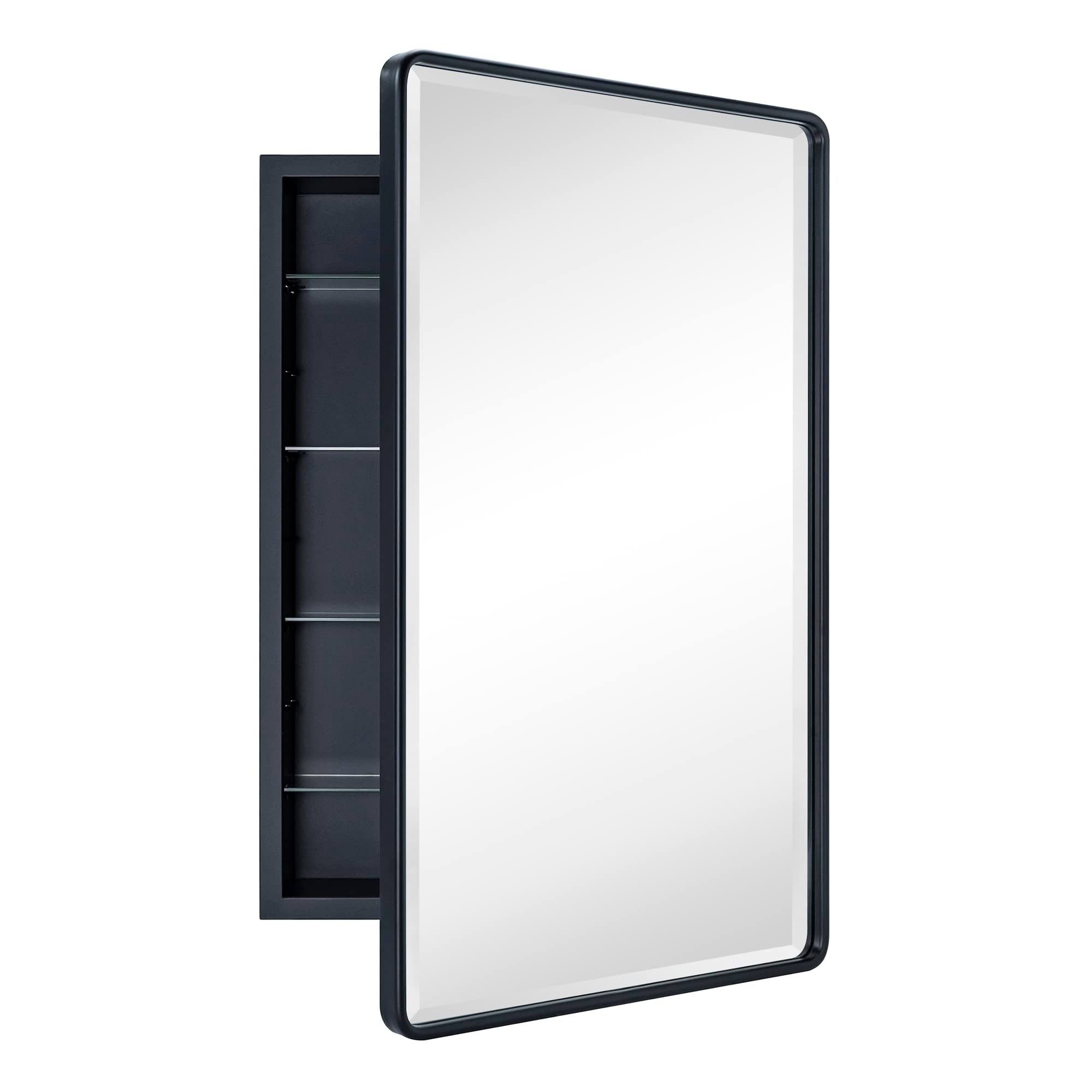 Farmhouse Recessed Metal Bathroom Medicine Cabinets with Mirror 24 inch x 16 inch - Black, Size: 24 x 16 - Black