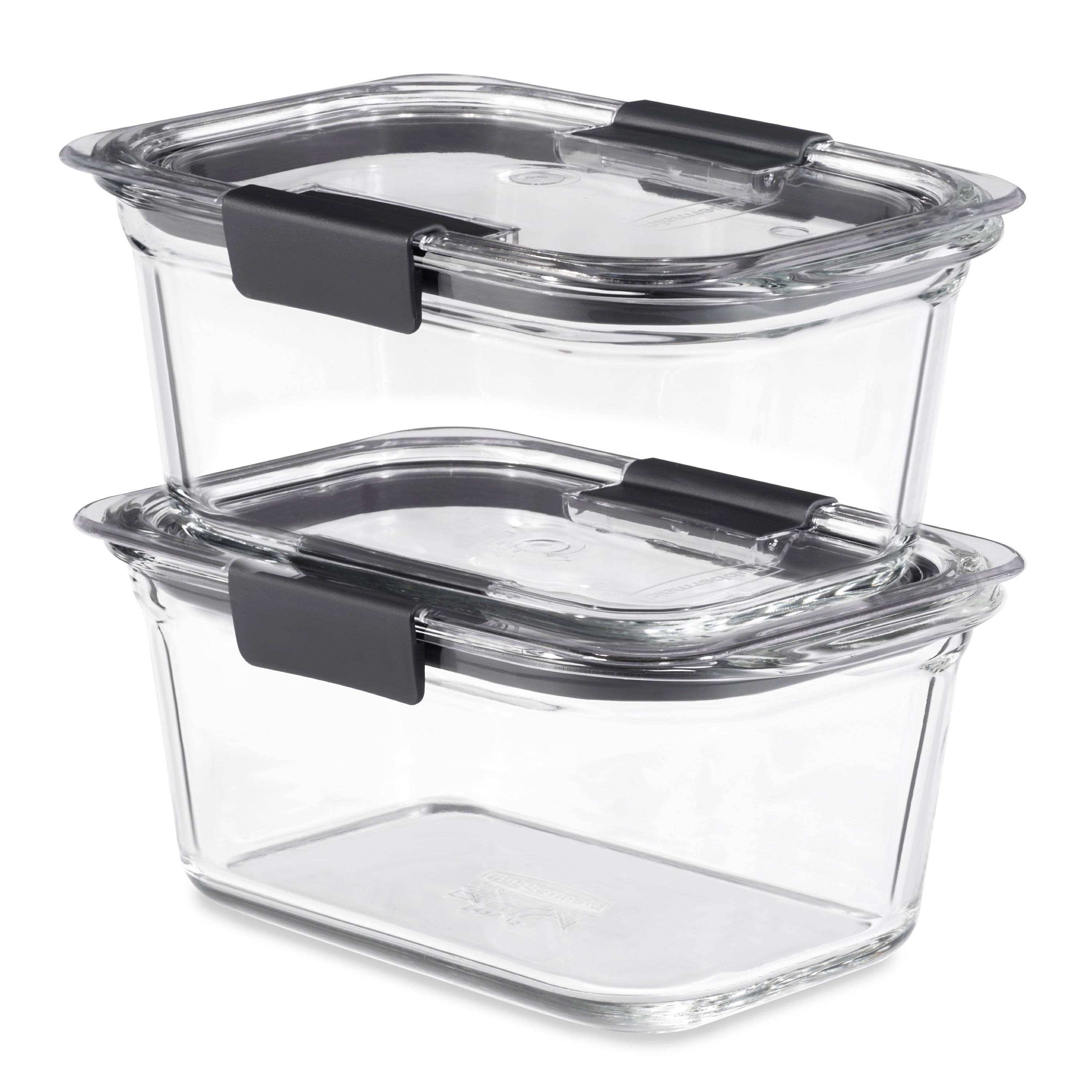 Rubbermaid Brilliance Glass Food Storage Containers, 8-Cup Food Containers with Lids, 2-Pack, Size: BPA Free and Leak Proof, Large