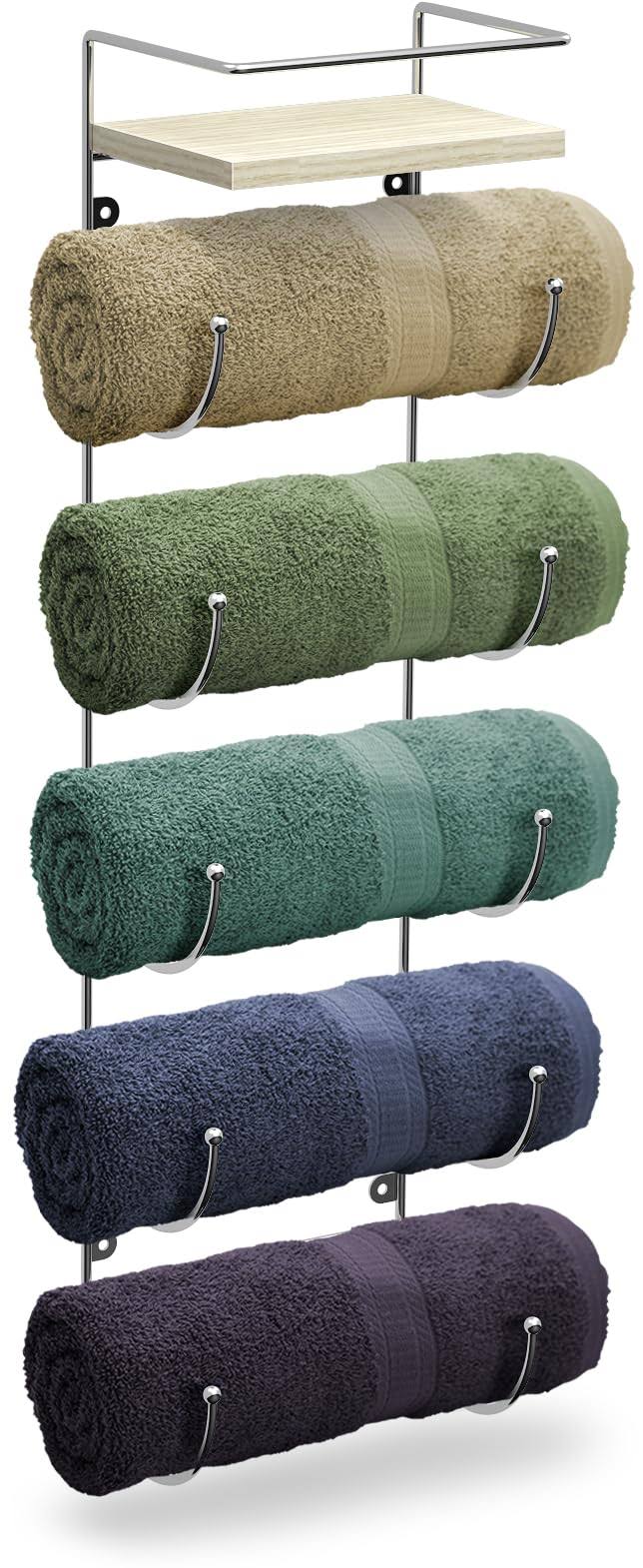 Sorbus 5-Tier Towel Rack with Wooden Top Shelf ,Silver