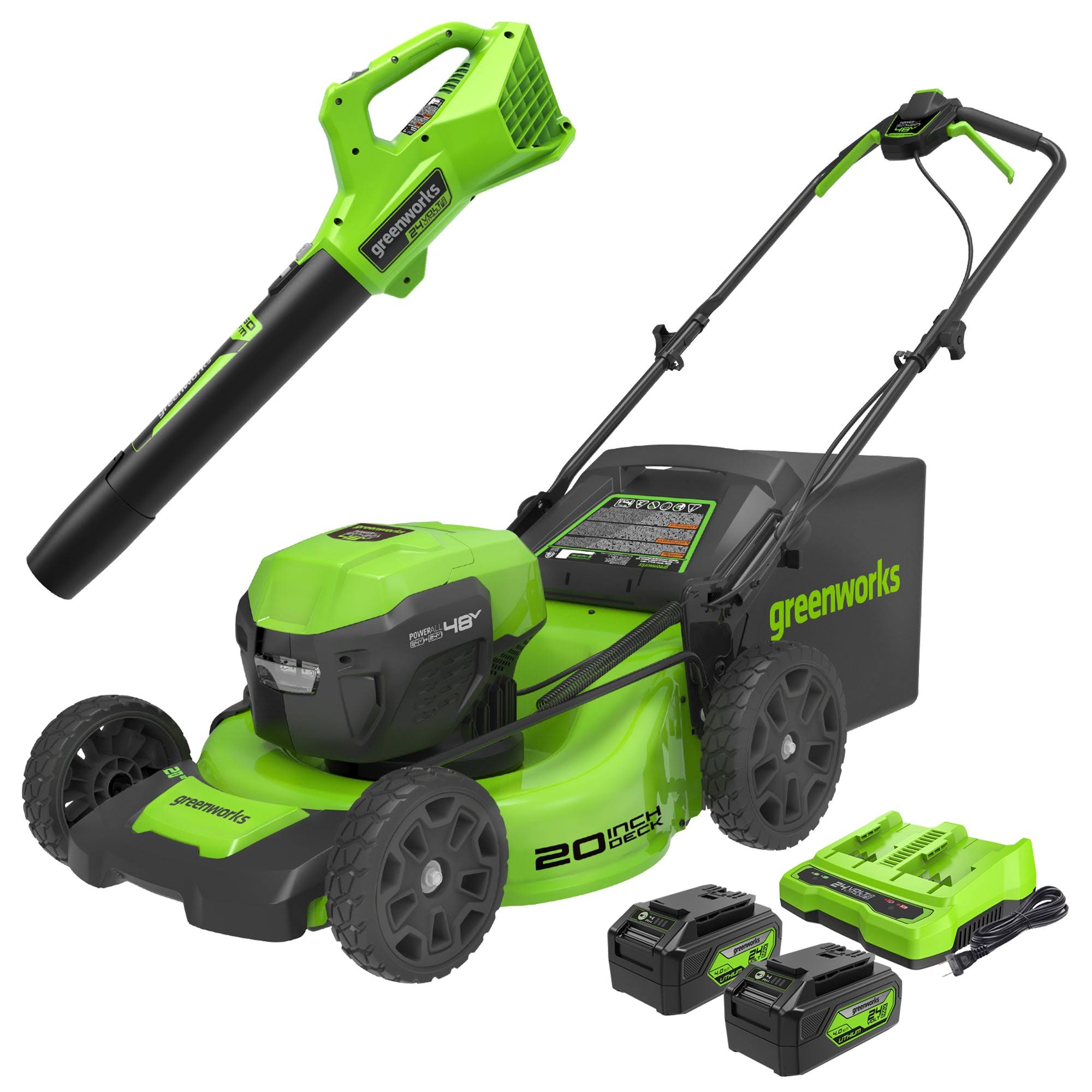 greenworkstools-48V (2x24V) 20" Cordless Battery Push Mower & 320 CFM Blower Combo Kit w/ (2) 4.0Ah Batteries & Dual Port Rapid Charger