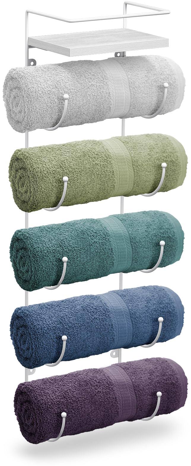 Sorbus 5-Tier Towel Rack with Wooden Top Shelf ,White
