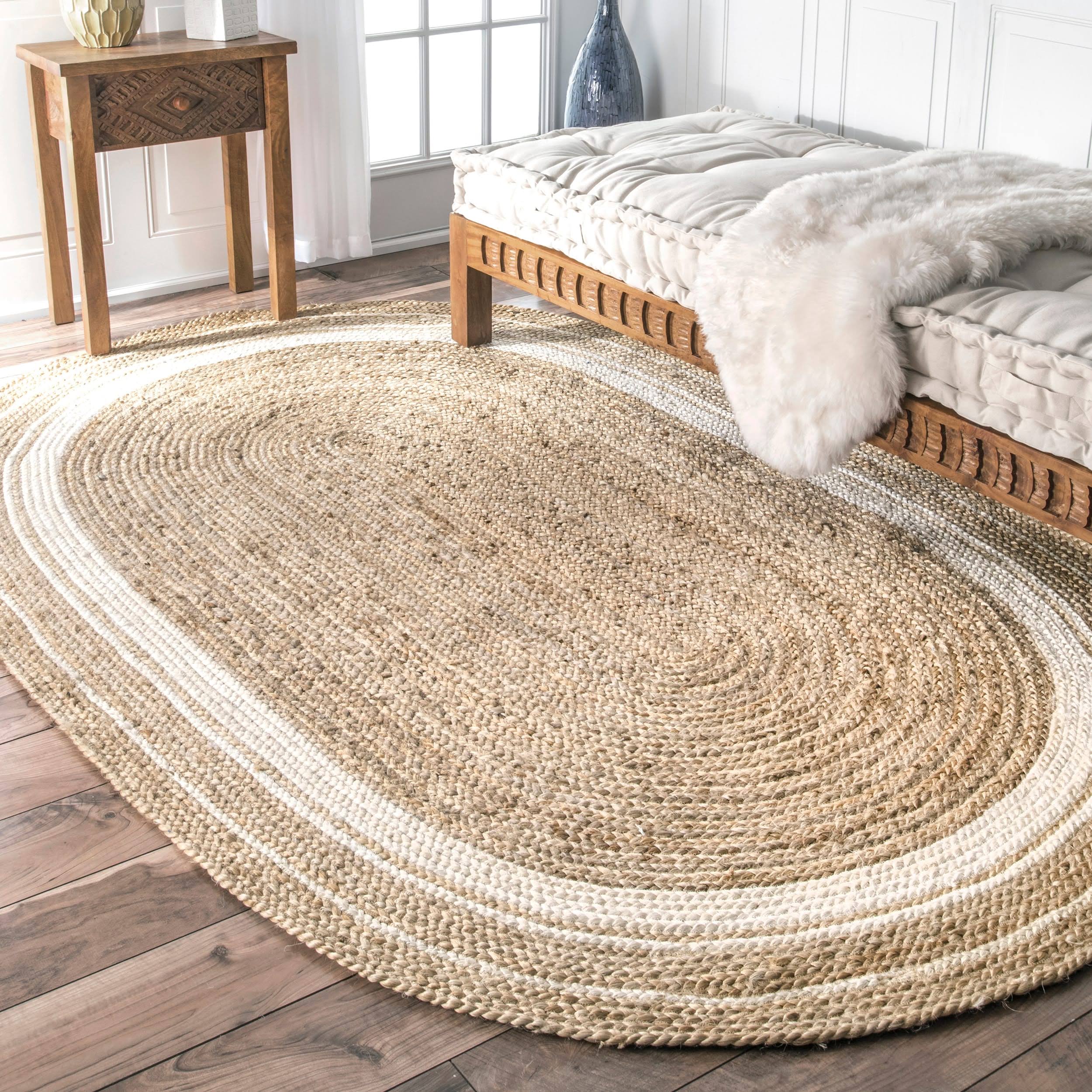 nuLOOM Rikki Braided Border Jute Area Rug, 6' x 9' Oval, Off-White