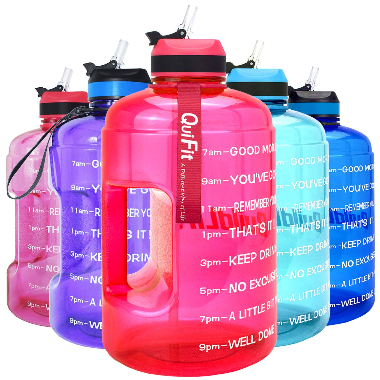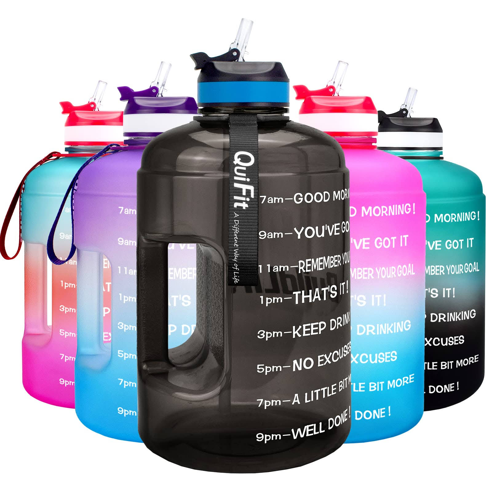 QuiFit Motivational Gallon Water Bottle - with Straw & Time Marker BPA Free Large Reusable Sport Water Jug with Handle for Fitness Outdoor