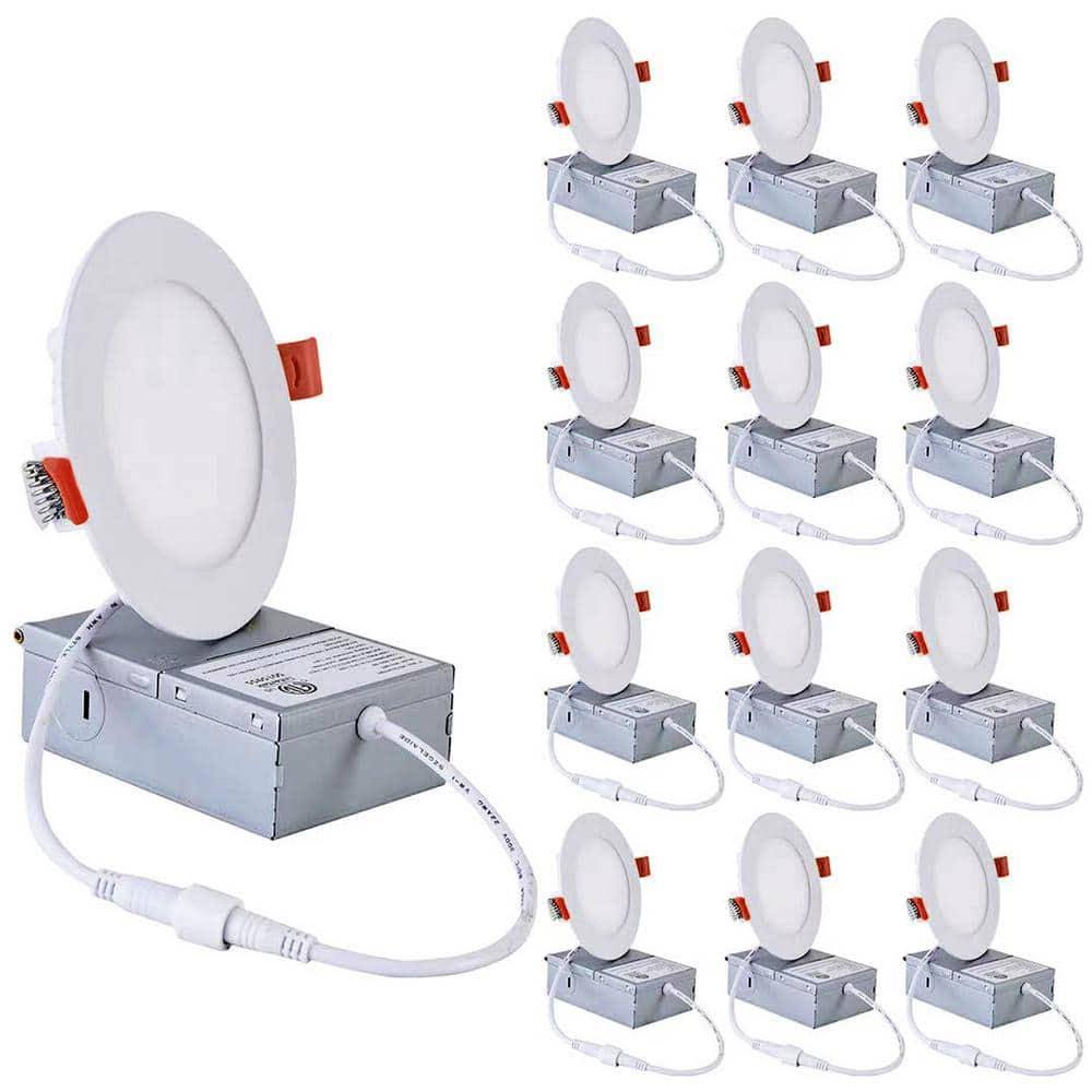 4 in. Canless Ultra-Thin 9-Watt CCT 5000K Remodel Integrated LED Recessed Light Kit (12-Pack)
