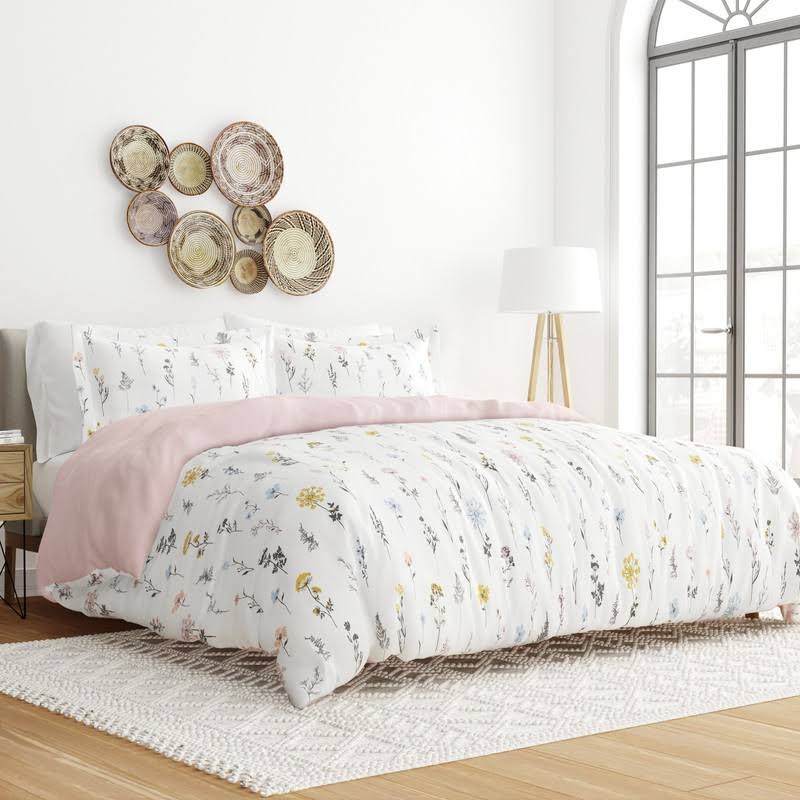 Soft Farmhouse Florals Premium 3 Piece Duvet Cover Set, Ultra Soft, Easy Care - Becky Cameron , Wild Flower / Pink, Full/Queen