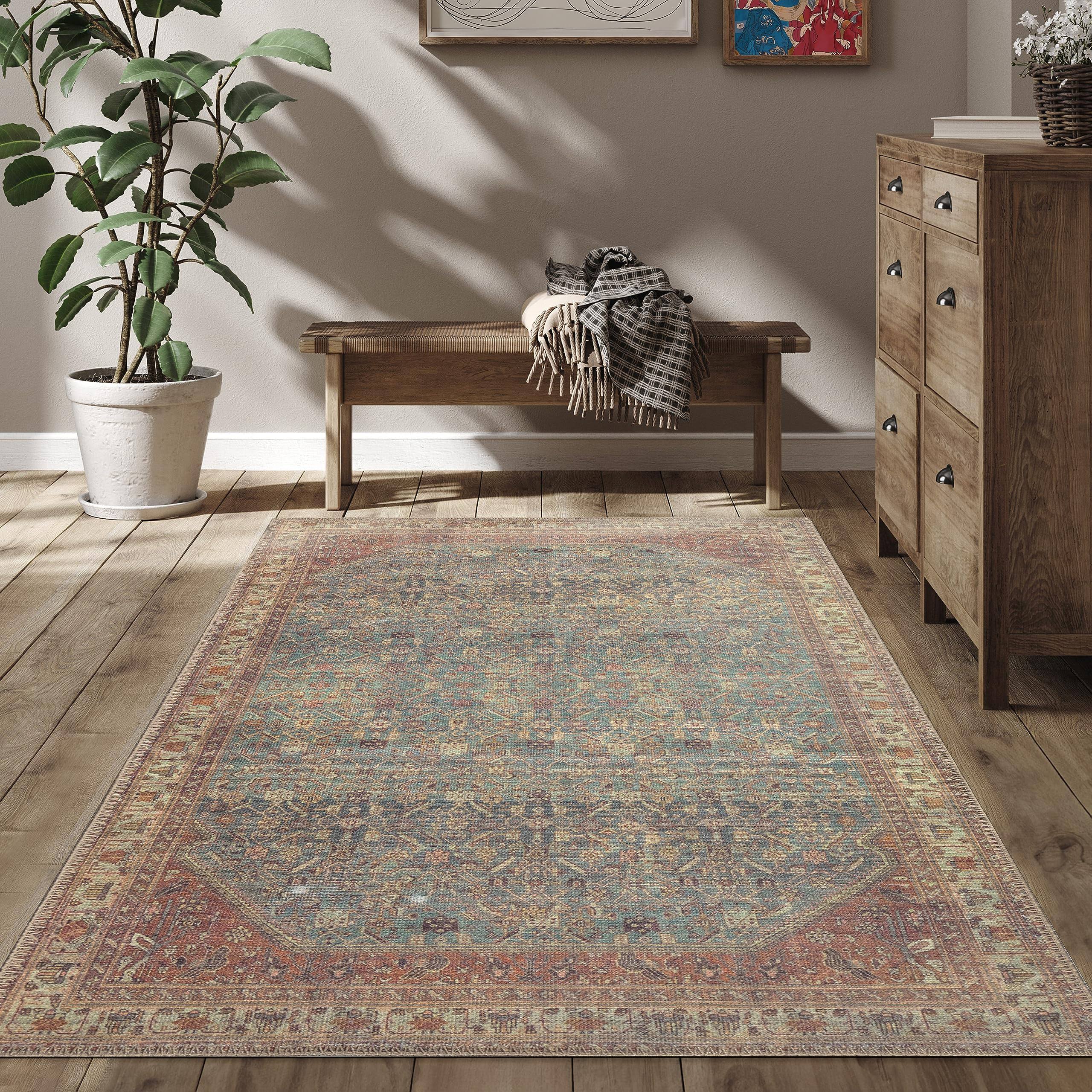 RugOver Machine Washable Area Rug, Pet-Friendly and Non-Slip Indoor Carpet for Kitchen, Bathroom, Living Room, Home Floor Decoration (Multicolor, 2'
