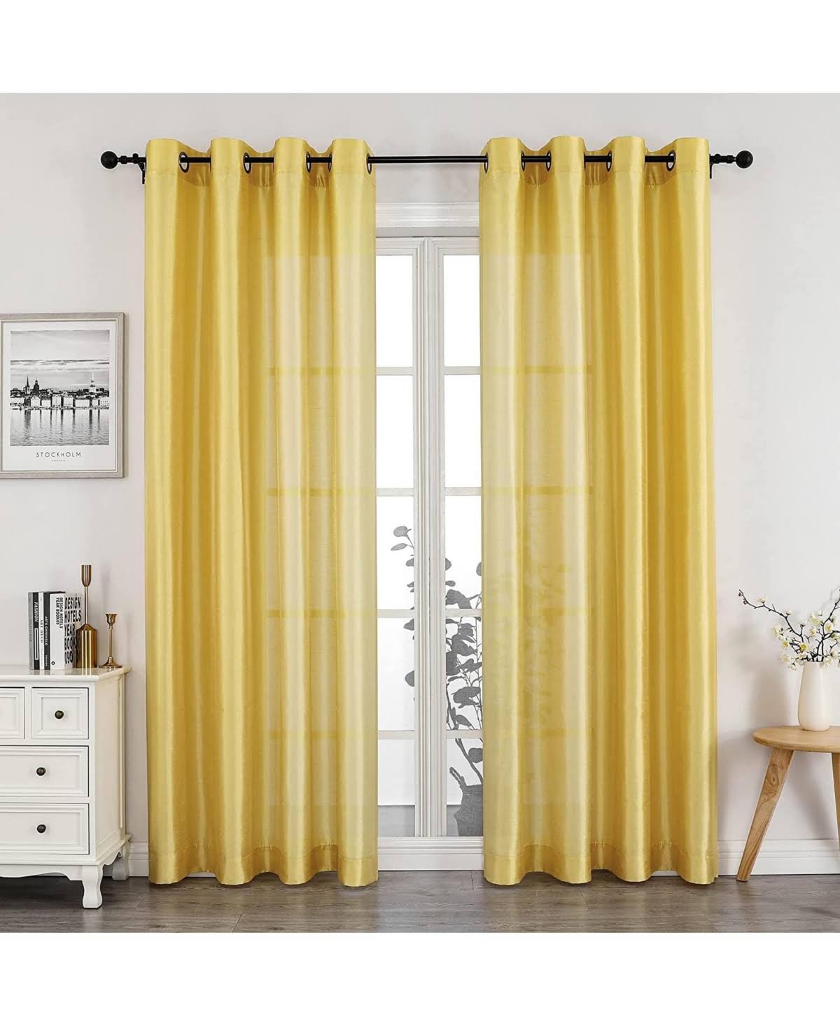 Kate Aurora Artisan Lightweight Transparent Faux Silk Sheer Grommet Single Curtain Panel - Yellow