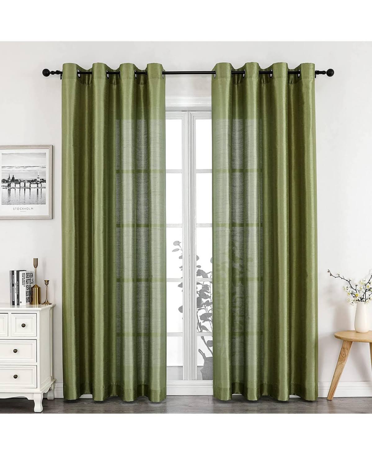 Kate Aurora Artisan Lightweight Transparent Faux Silk Sheer Grommet Single Curtain Panel - Green