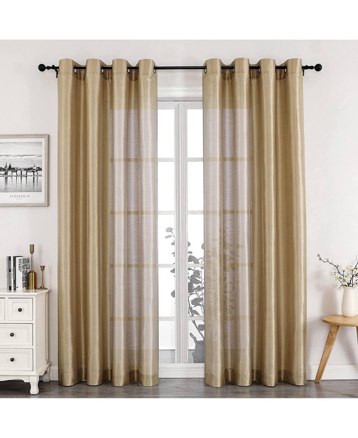 Kate Aurora Artisan Lightweight Transparent Faux Silk Sheer Grommet Single Curtain Panel - Tan