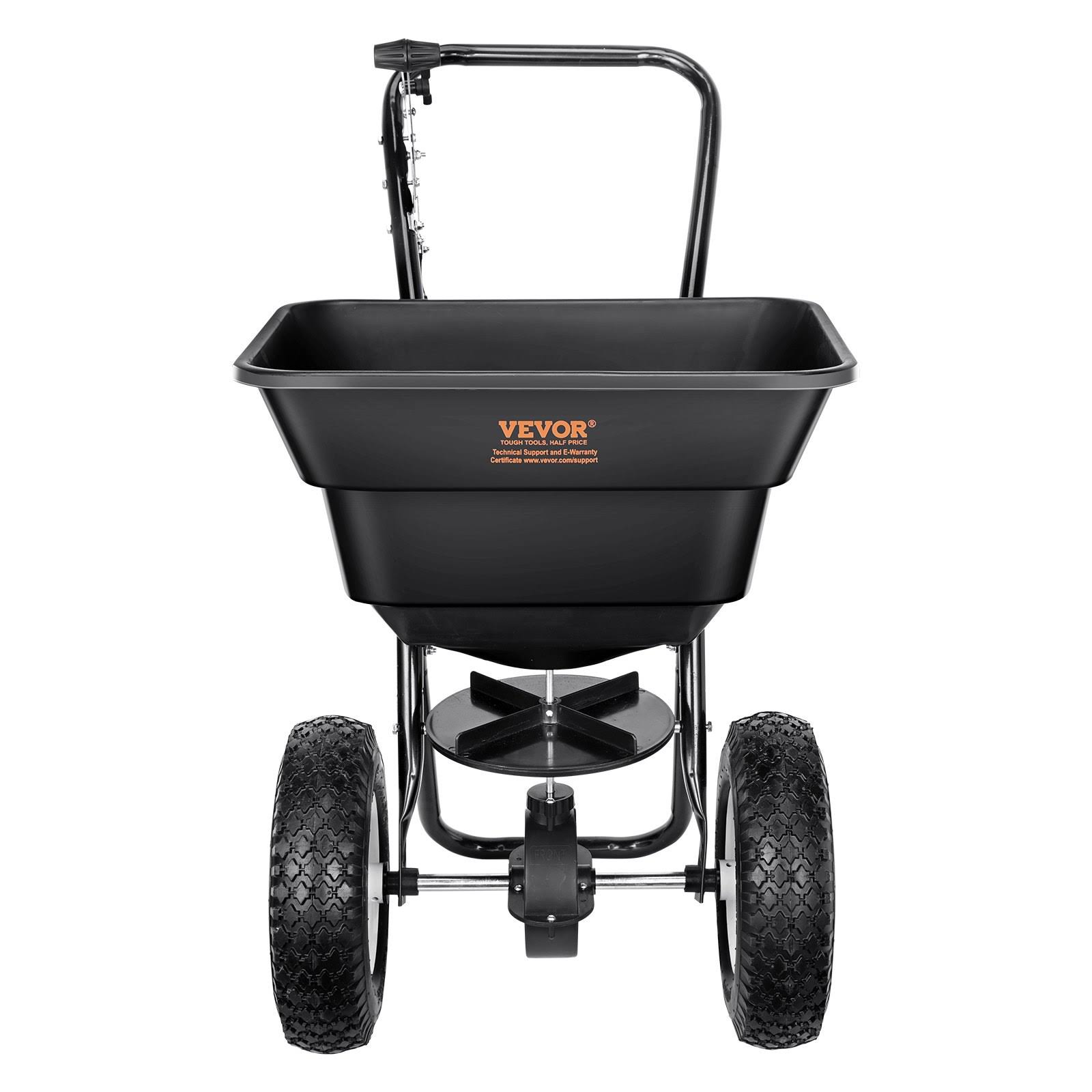 VEVOR TCSBJ80LBS125B0P1V0 80 lbs Broadcast Walk-Behind Turf Spreader with 12 in. Wheels - Black
