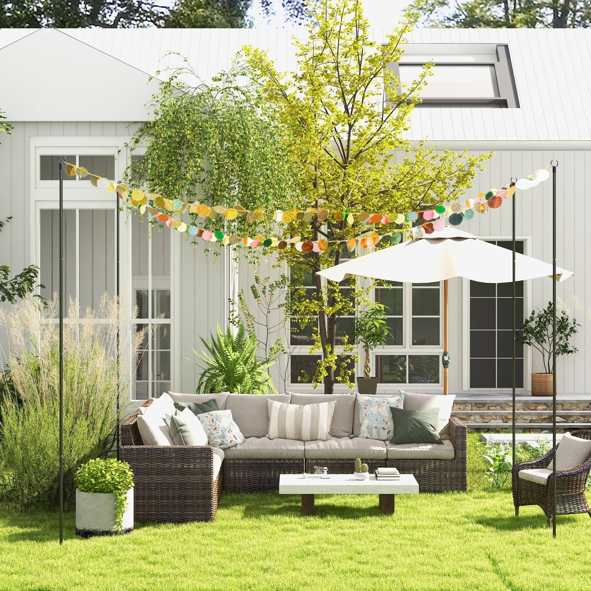 Outsunny 4 Pack of String Light Poles, 10' Light Poles for Hanging Outside Decor, Steel Lighting Stand - Black