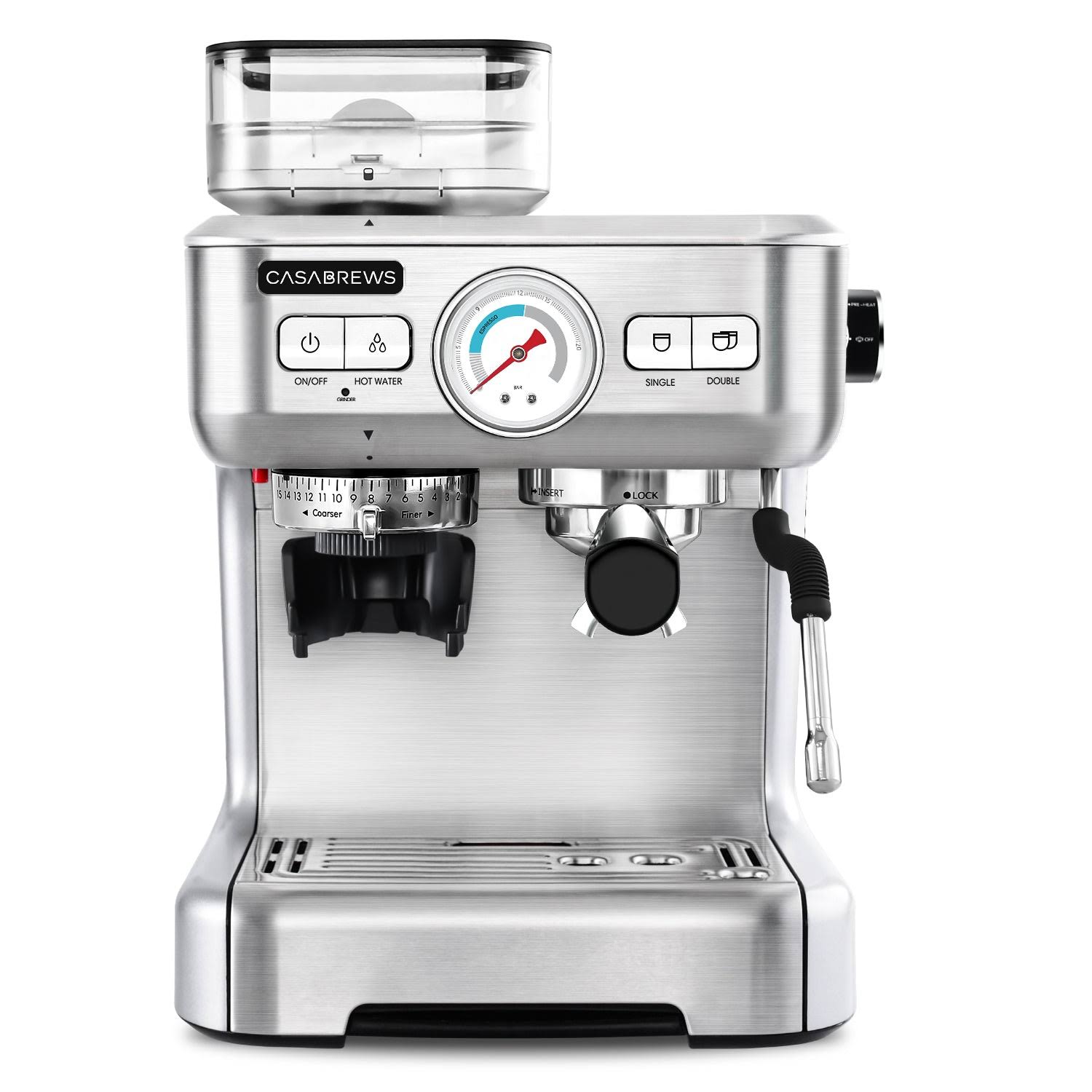 CASABREWS 20 Bar All-in-One Precision Espresso Machine, Build in Grinder, w/ 92oz Water Tank, Stainless Steel, Silver