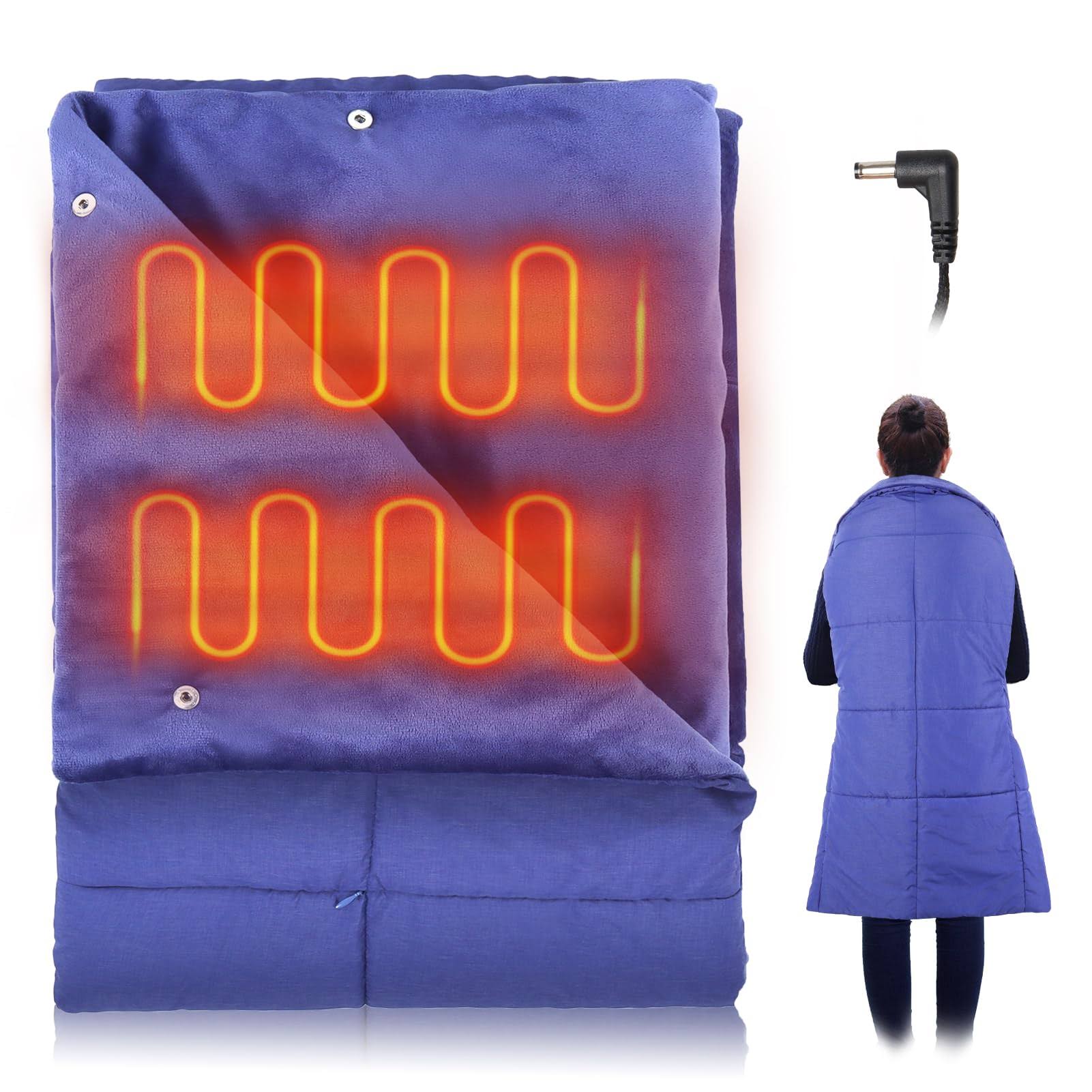 FlyfreeU Portable Heated Blanket DC 7.4V Port, Cordless Electric Blanket Wearable Heated Blanket Throw with 3 Heating Levels, 56'' x 45'' Heated