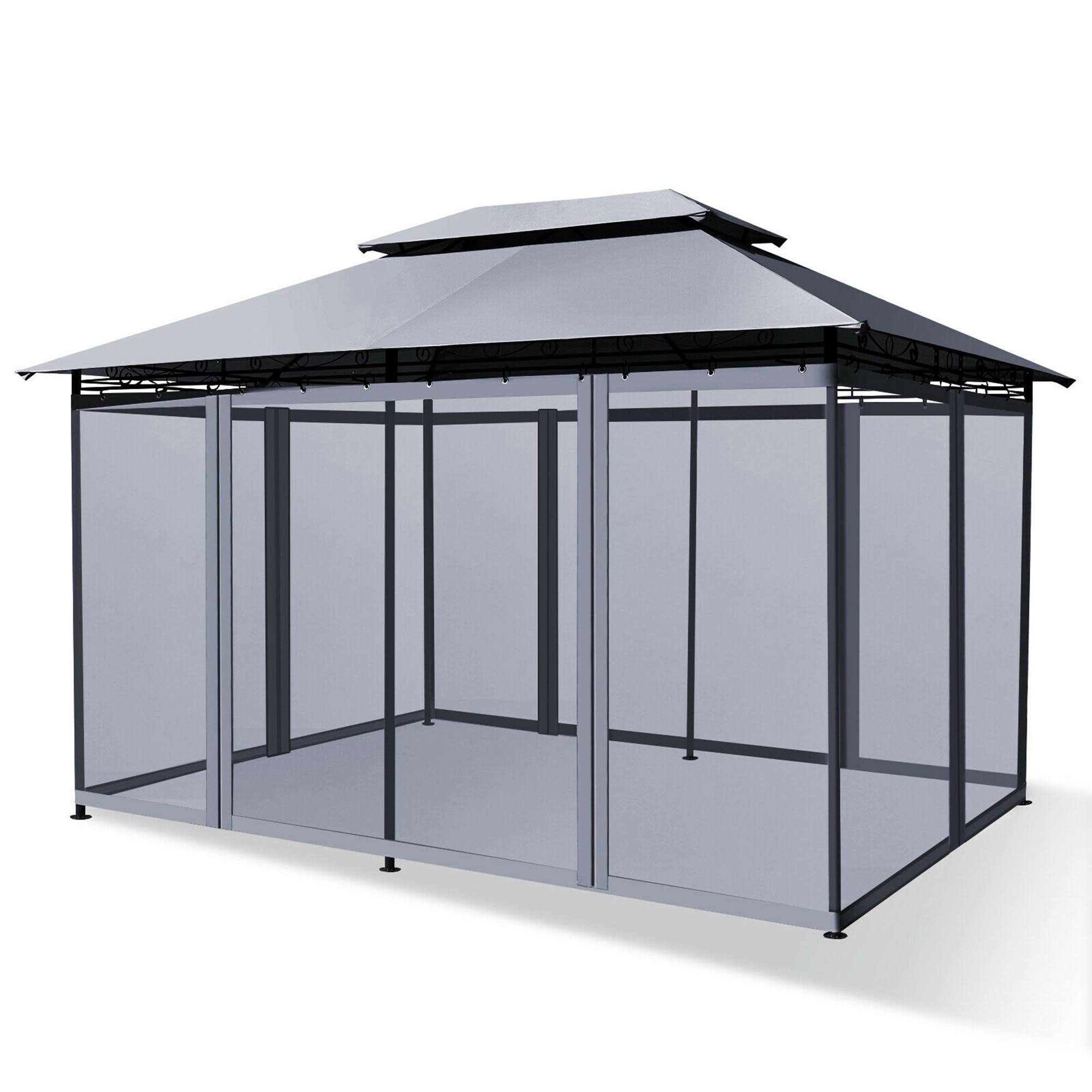 Costway 2-Tier 10'x13' Steel Gazebo Canopy Tent Shelter Patio Garden Outdoor Netting - Beige