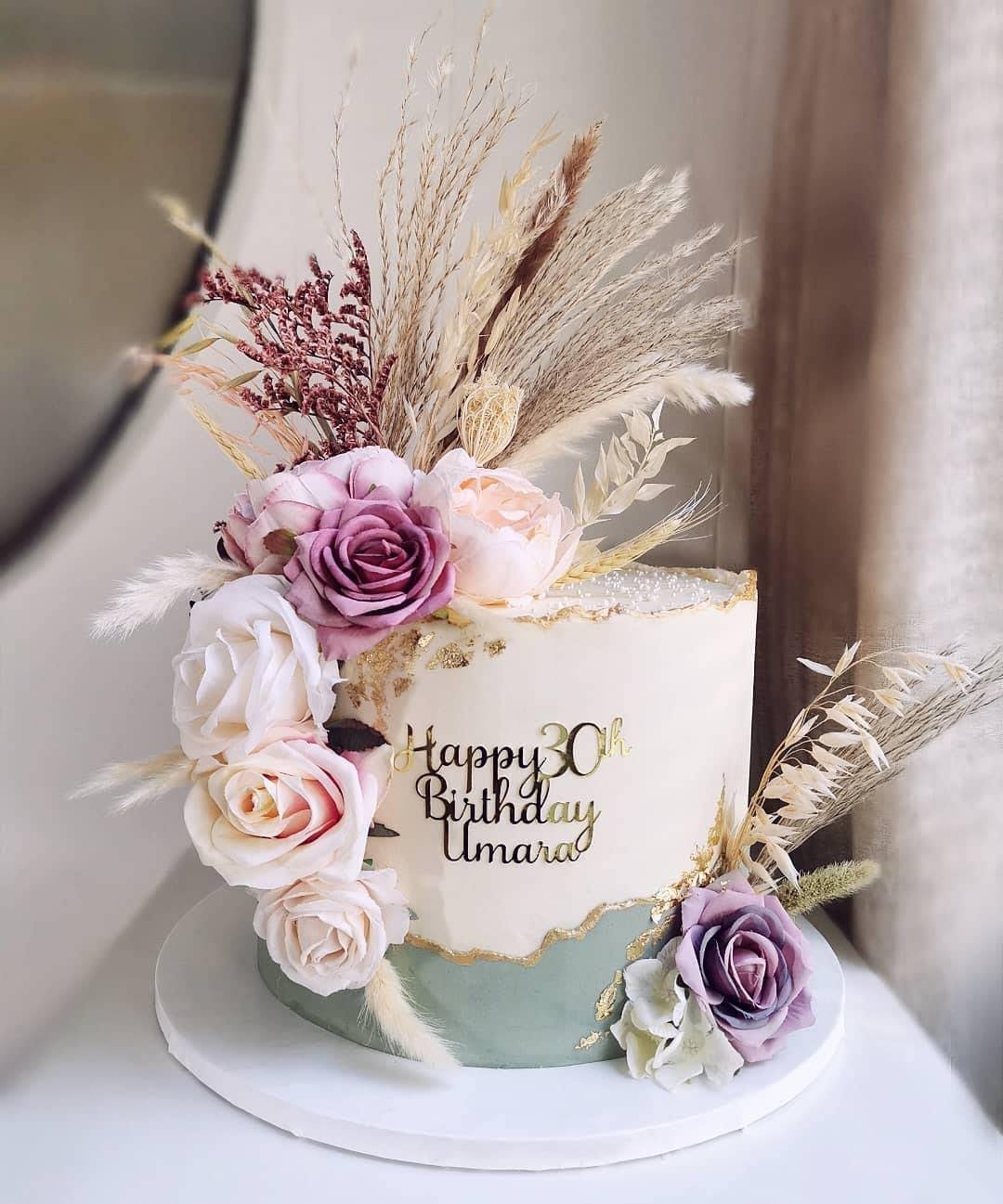 24 Pcs Natural Boho Cake Topper Vintage Artificial Flowers Leaves Various Dried Pampas Grass Cake Decorations for Wedding Bridal Birthday Party