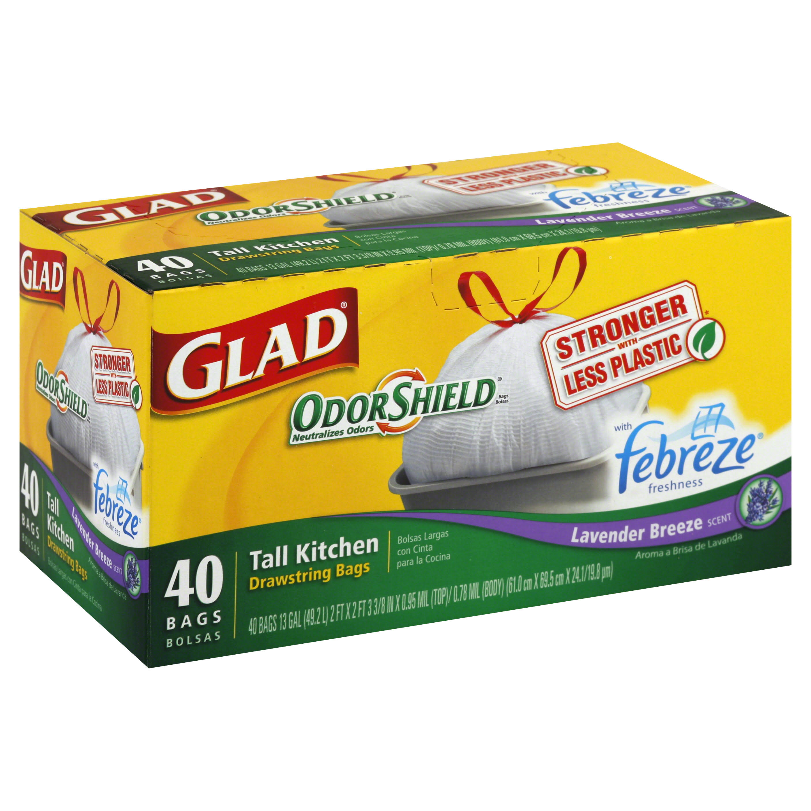 Glad Odor Shield Tall Drawstring Kitchen Bags, 13 Gallon, Lavender - 40 count