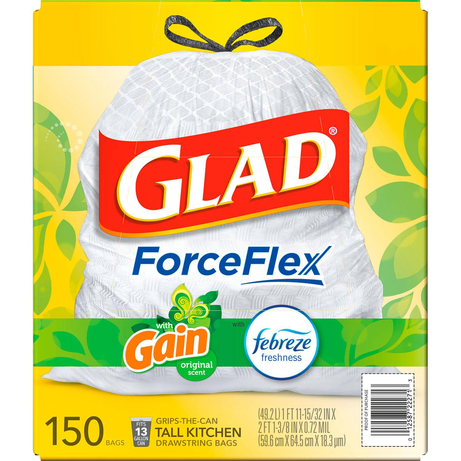 Glad ForceFlex Tall Kitchen Drawstring Trash Bags with Gain Original Scent & Febreze Freshness - White - 13 Gallon - 150 ct