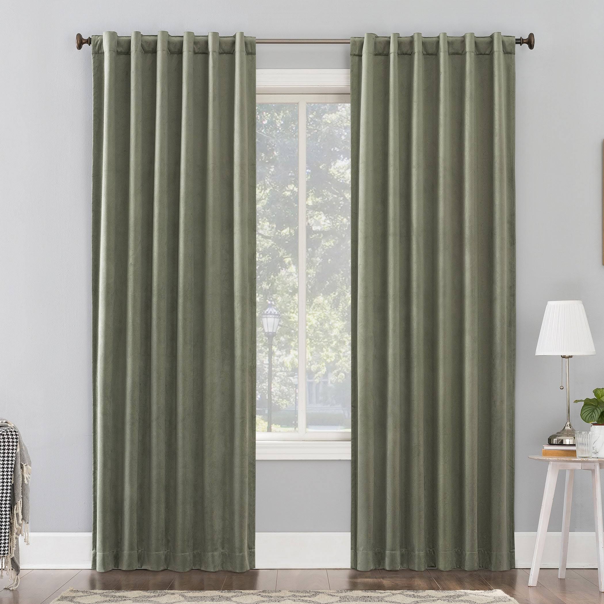 Sun Zero Amherst Velvet Noise Reducing Thermal Extreme Blackout Back Tab Curtain Panel, 84" L x 50" W - Moss Green