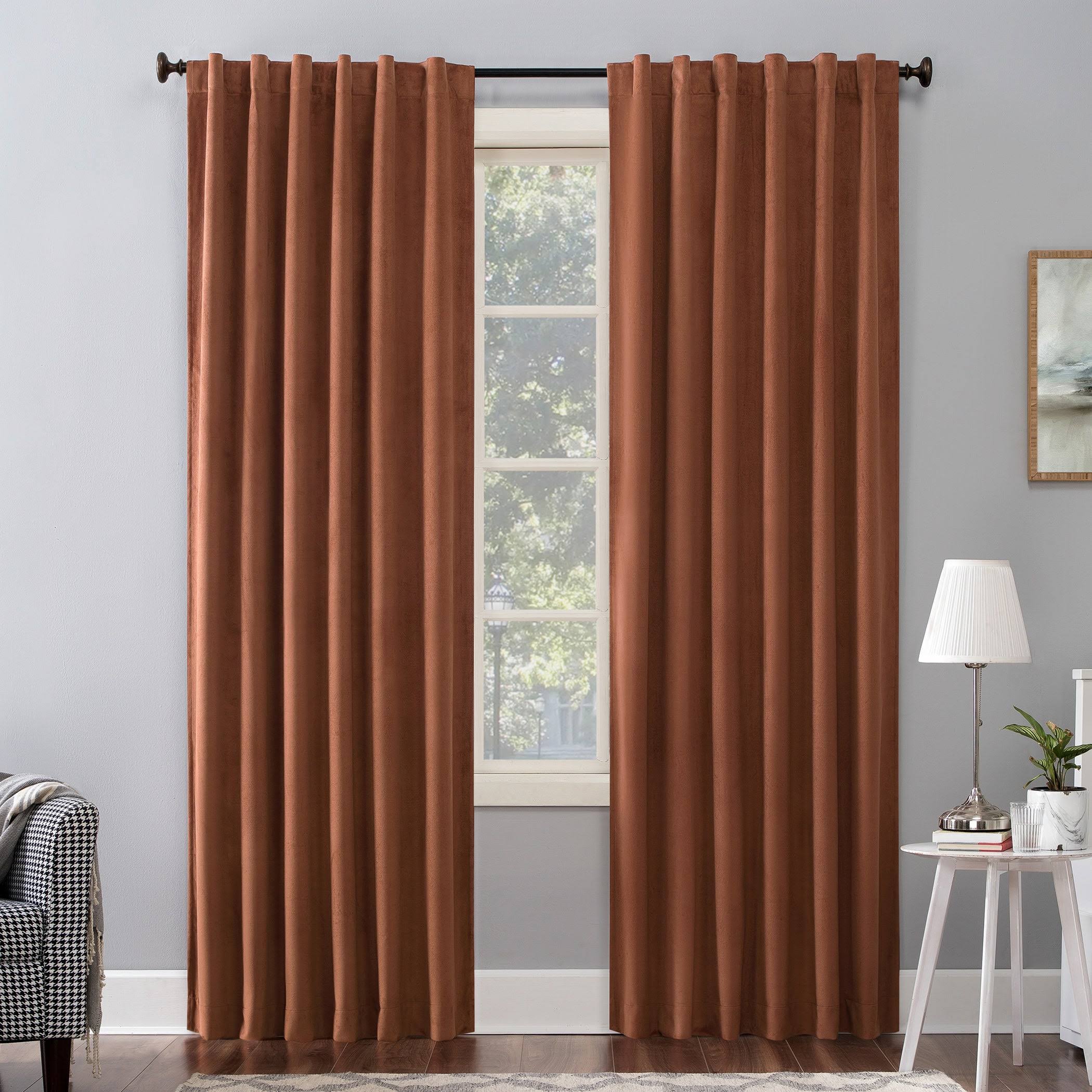 84"x50" Amherst Velvet Noise Reducing Thermal Back Tab Extreme 100% Blackout Curtain Panel Dark Orange - Sun Zero