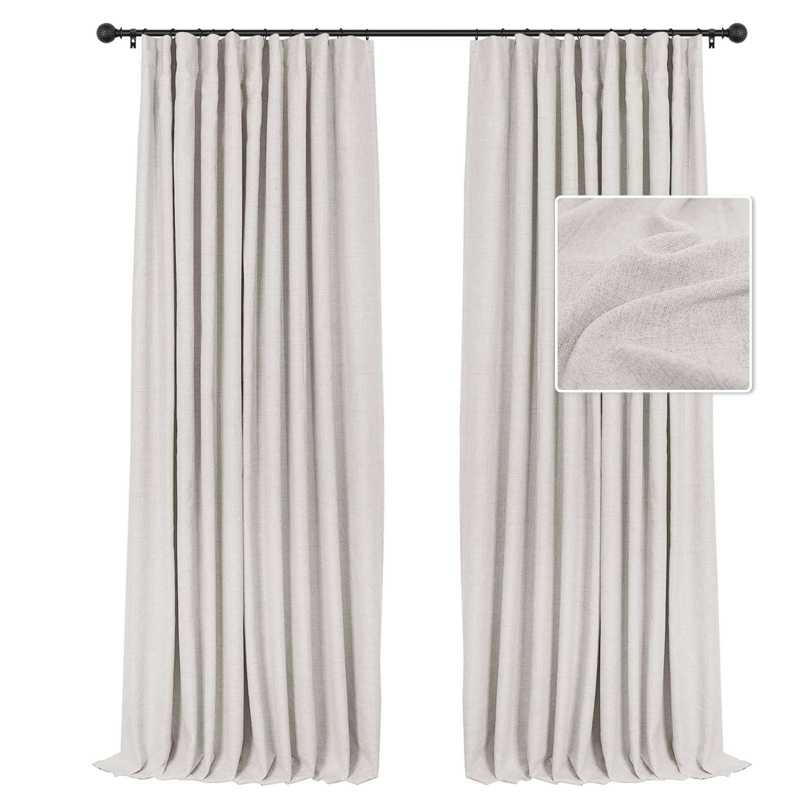 INOVADAY Linen 100% Blackout Curtains 108 inch Length 2 Panels Set Textured Thermal Insulated Curtain Drapes for Bedroom Living