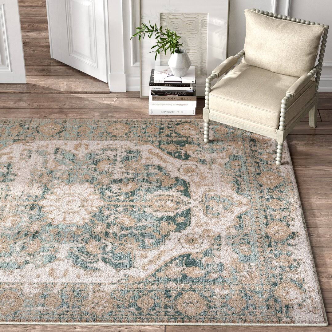 Aya Distressed Vintage Medallion Oriental Blue/Beige Area Rug Bungalow Rose Rug Size: Rectangle 5'3" x 7'3"