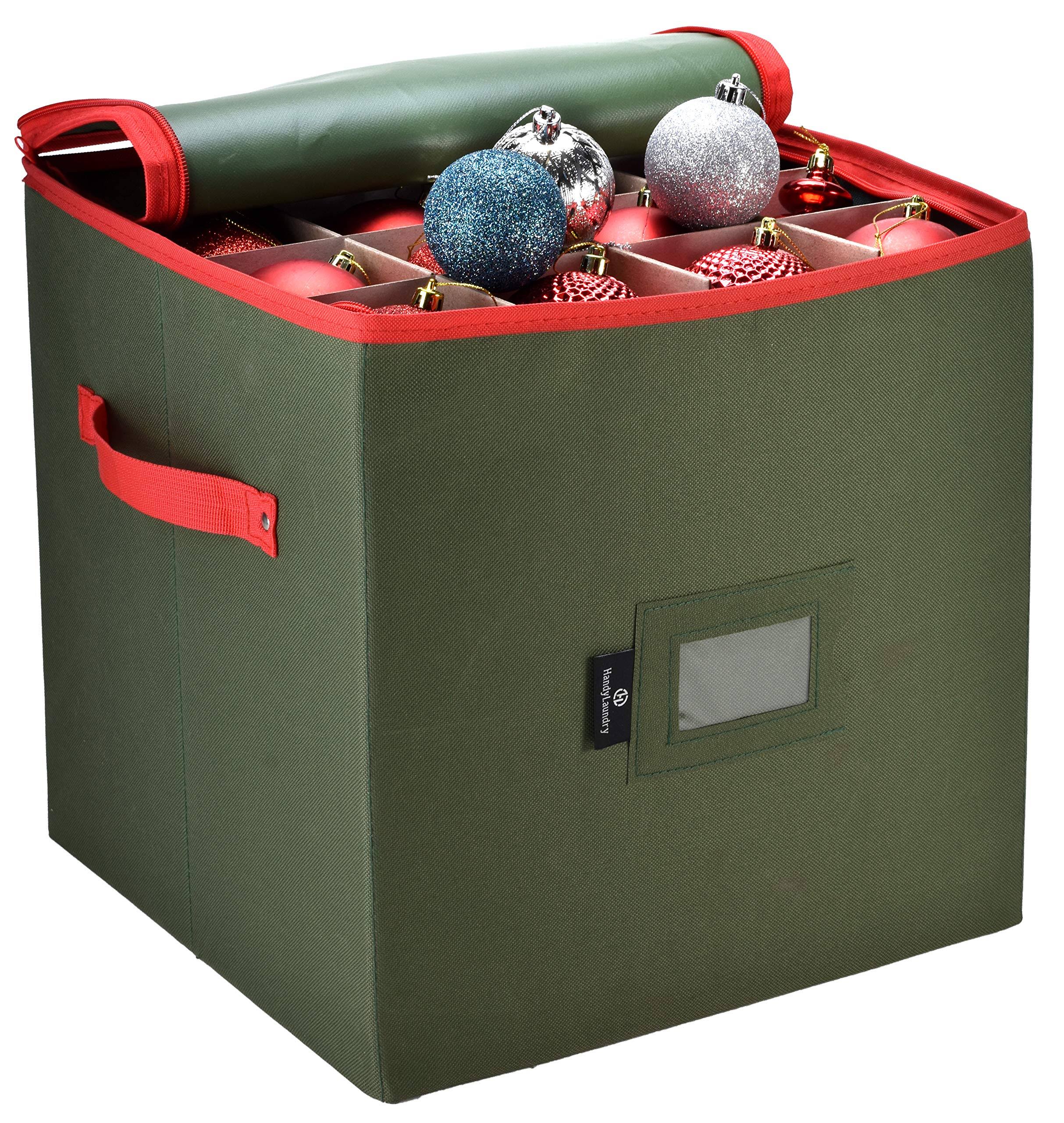 Christmas Ornament Storage - Stores Up to 64 Holiday Ornaments, Adjustable Dividers, Zippered Closure with Two Handles. Attractive Storage Box Keeps