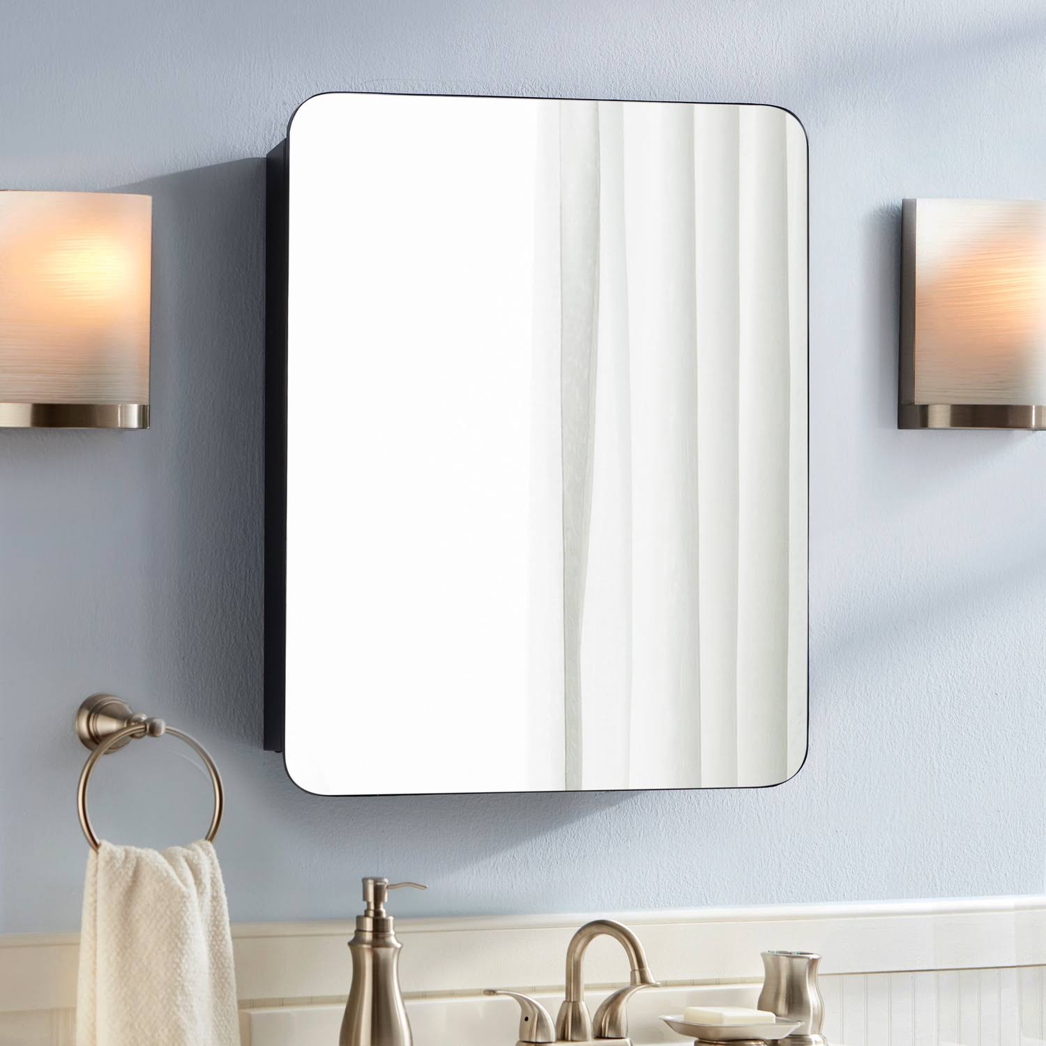 Allen + Roth Medicine Cabinet 20-in x 26-in Surface/Recessed Mount Matte Black Mirrored Square Soft Close Medicine Cabinet