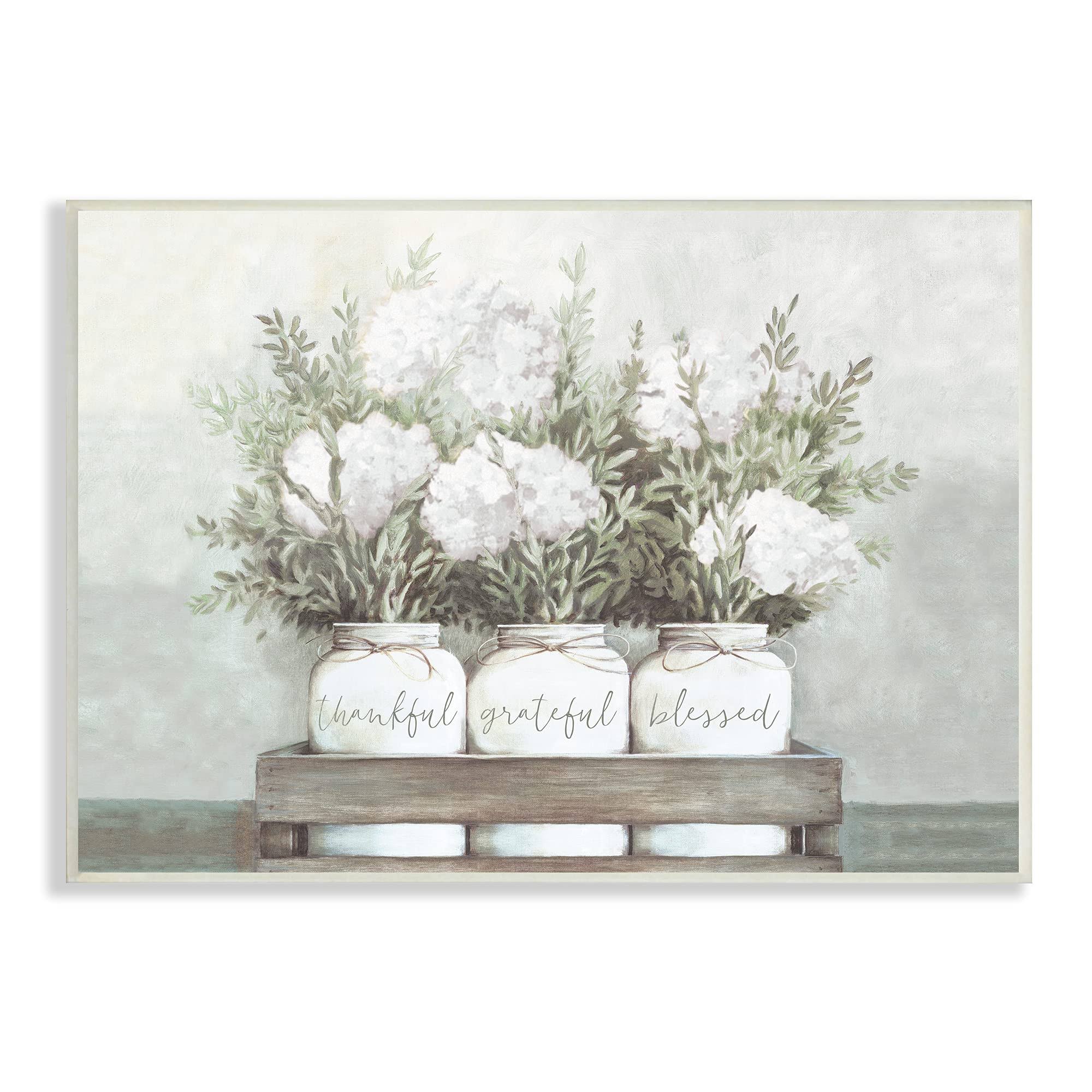 Stupell Industries Pristine Hydrangea Bouquets Thankful Grateful Blessed Sentiment Canvas Wall Art Design by Dogwood Portfolio