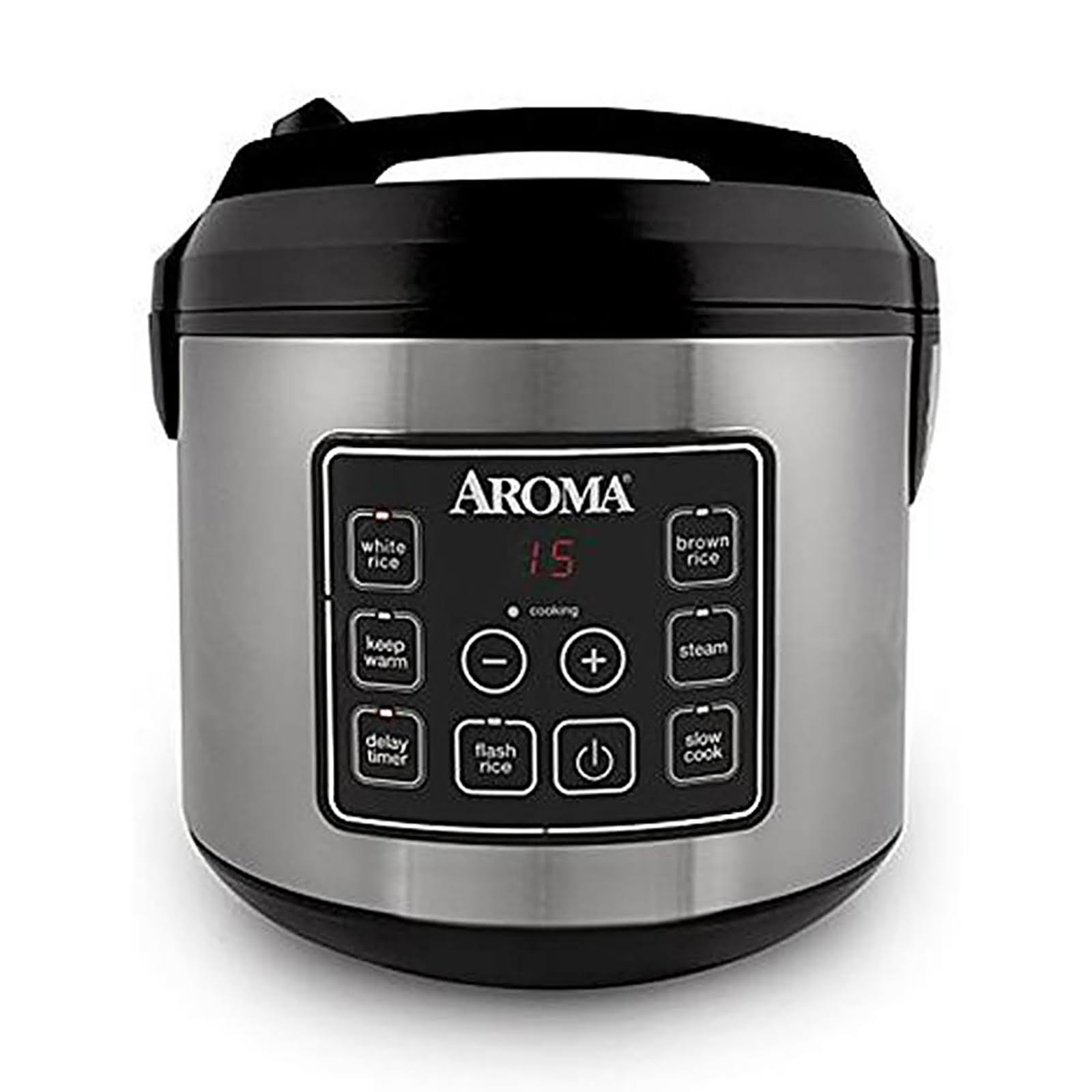 Aroma Housewares 20 Cup Stainless Steel Digital Rice Cooker, Black/Silver