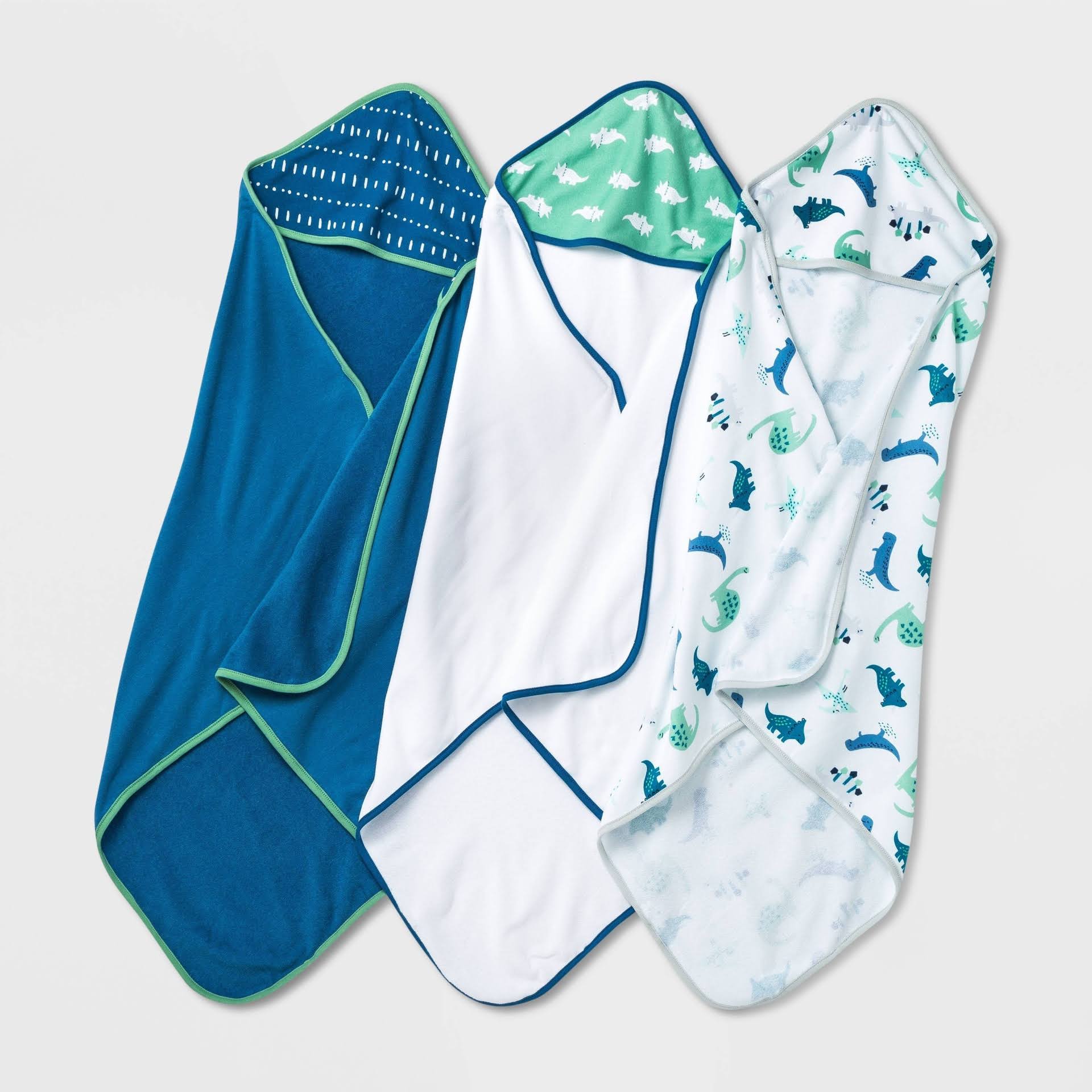 Baby Boys' 3pk Dino Hooded Towel - Cloud Island Blue