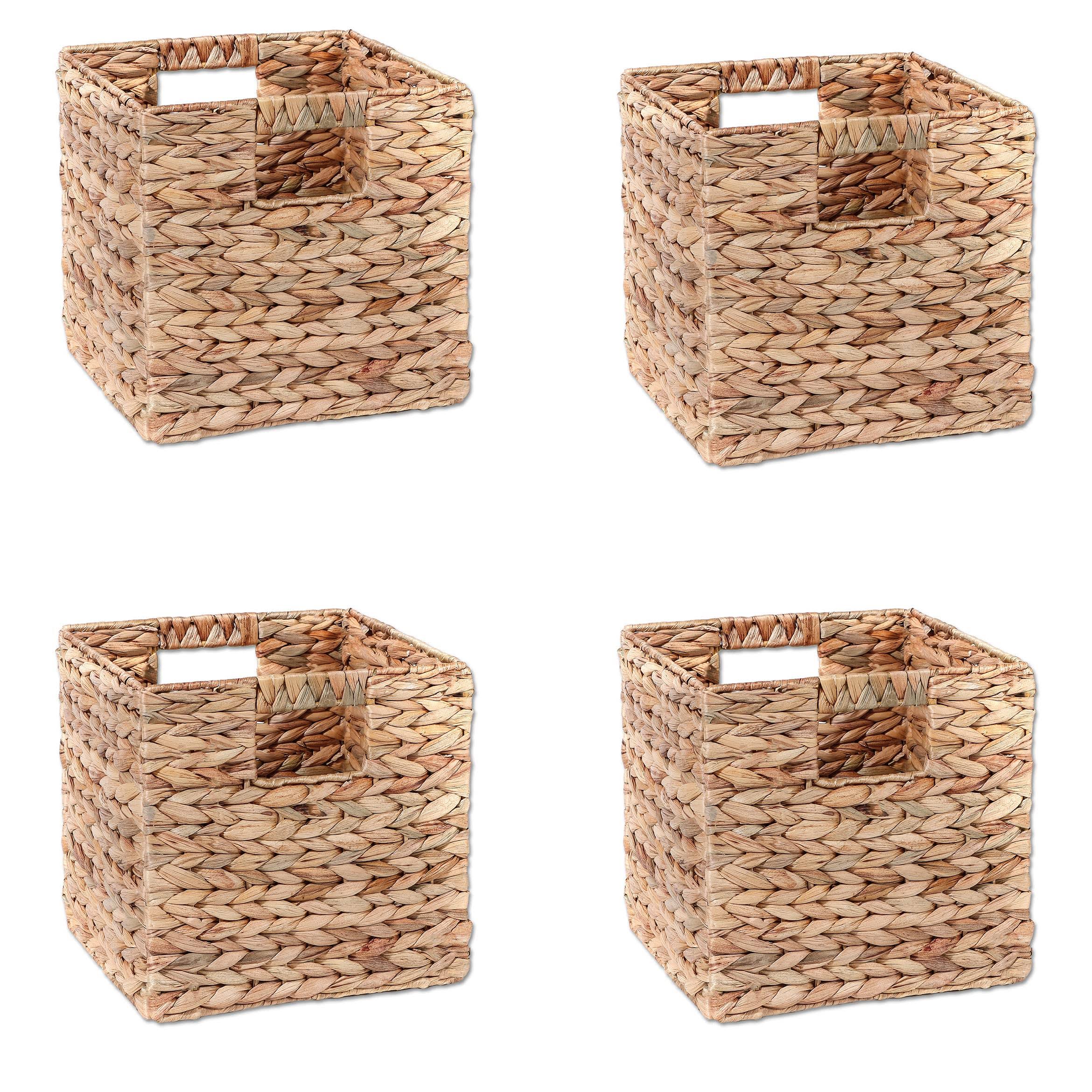 Trademark Innovations Foldable Hyacinth Storage Basket with Iron Wire Frame (Set of 4)