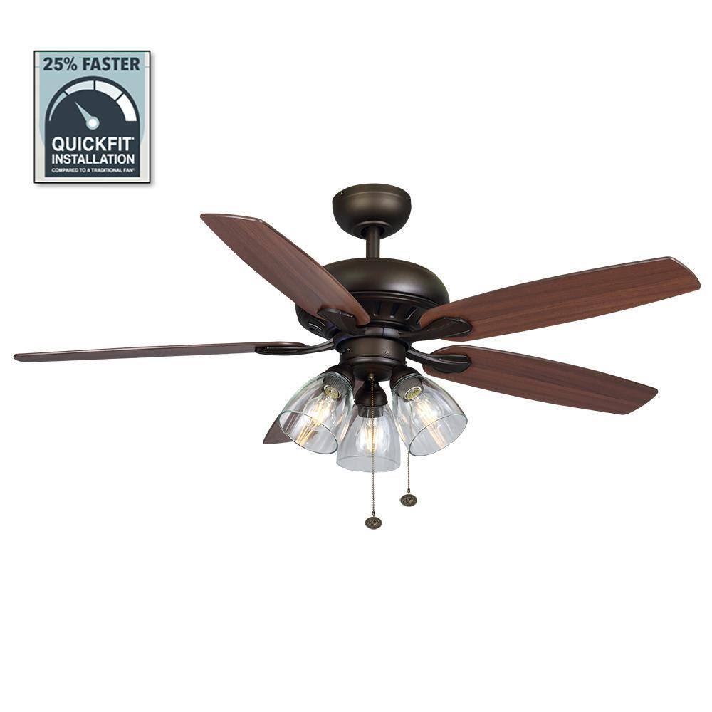 Hampton Bay Rockport 52 in. Bronze LED Ceiling Fan with Light Kit