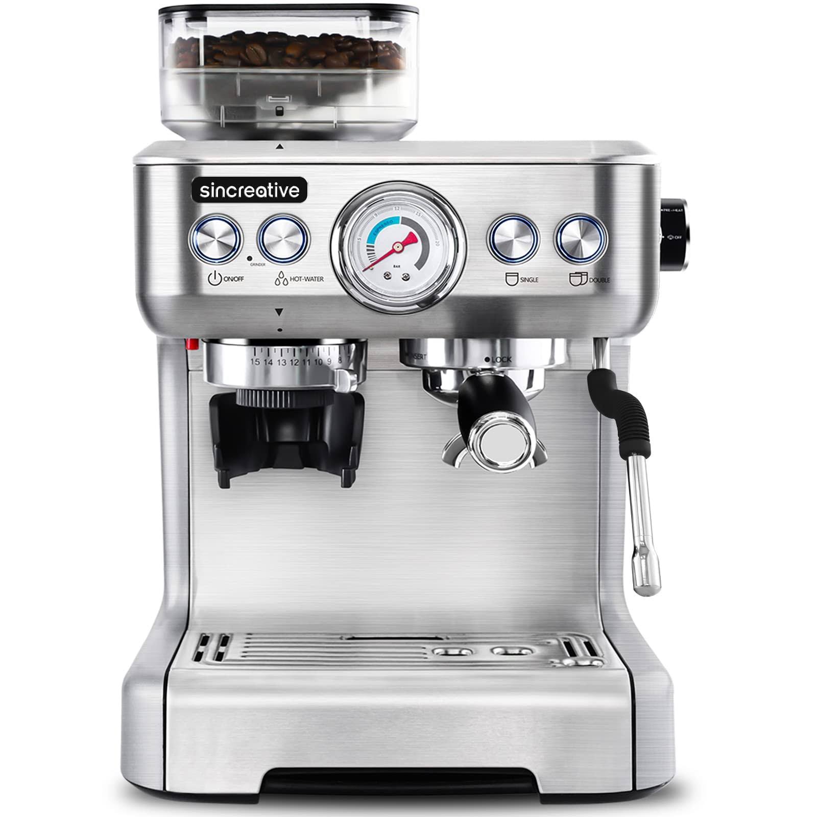 Sincreative CM5700 Espresso Machine and Coffee Maker with Grinder and Steam Wand