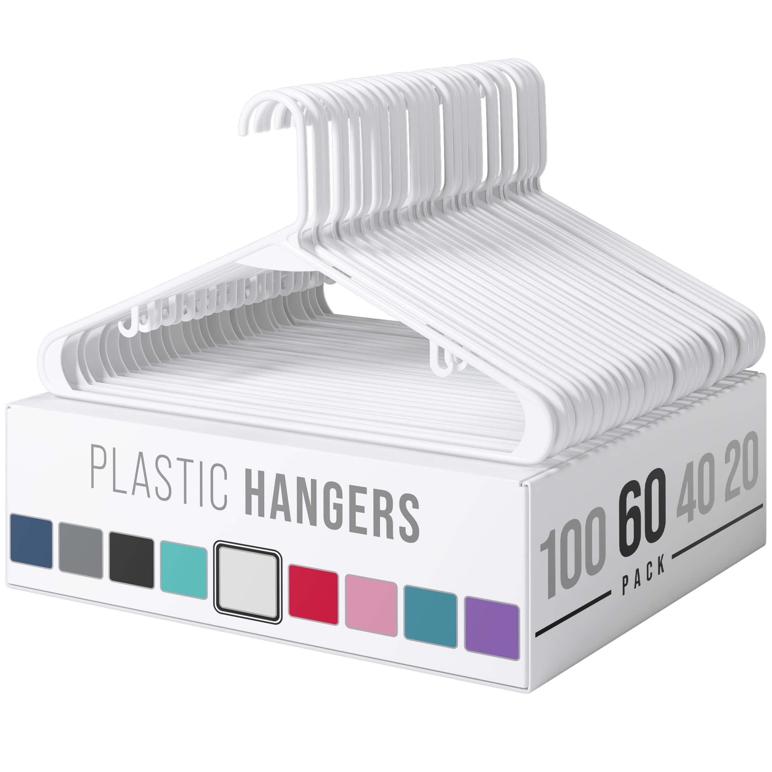 Neaterize Plastic Clothes Hangers (20 40 60 100 Packs) Heavy Duty Durable Coat and Clothes Hangers | Vibrant Color Hangers | Lightweight Space Saving